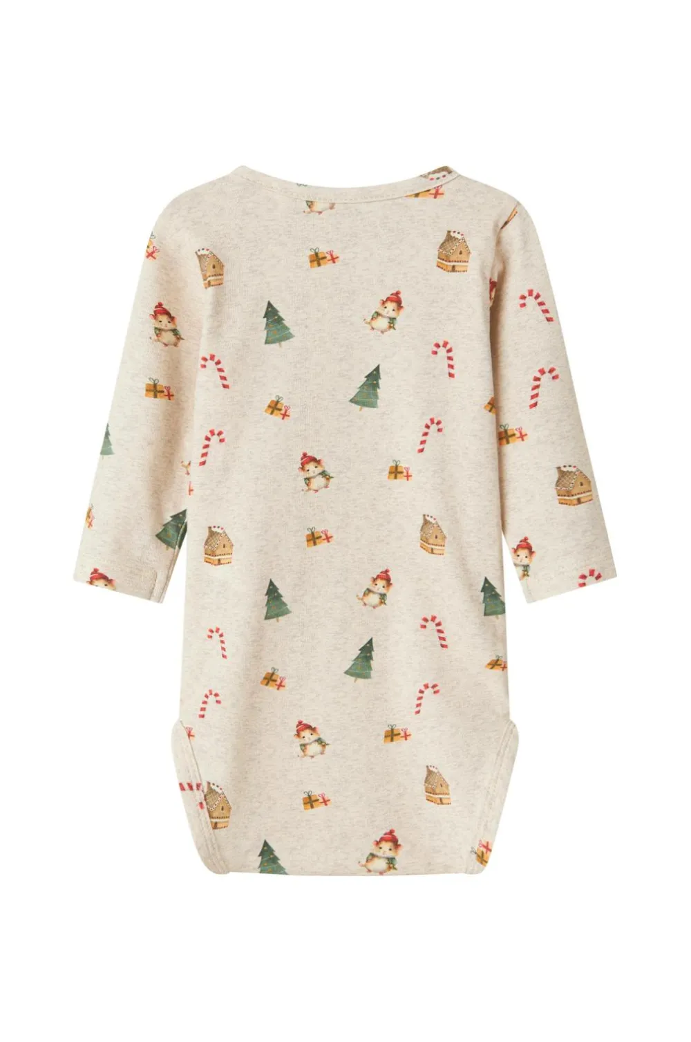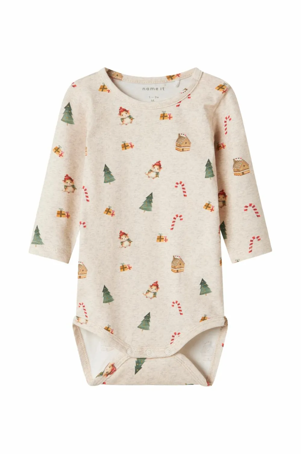 • Langærmet bodystocking med julemotiv i bomuldsjersey