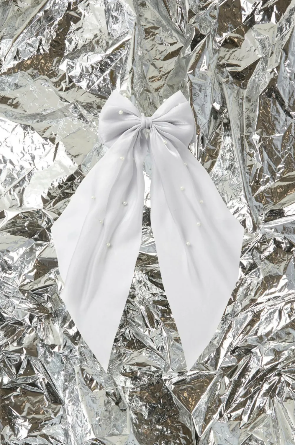 • Stor sløjfe i chiffon med broderede perler