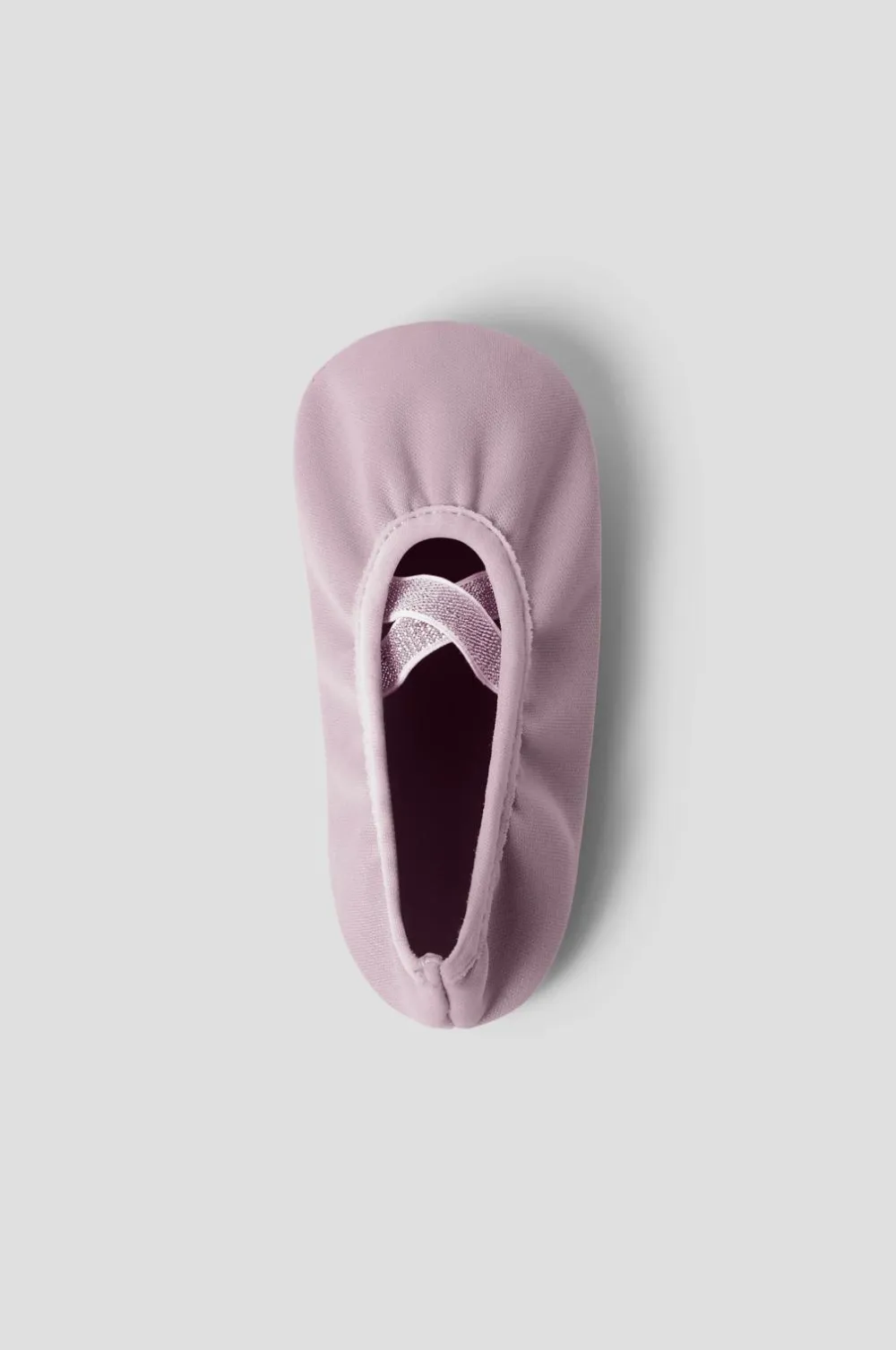 • Øvredel i tekstil med glitrende, krydsende elastikremme over foden
