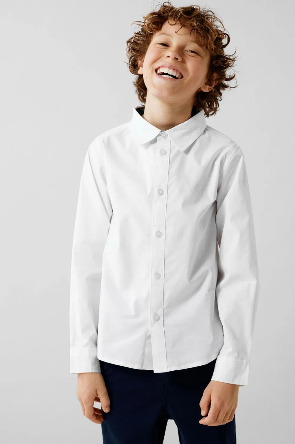 Skjorte i bomuld med et lille broderi på brystet. Manchet med en knap.