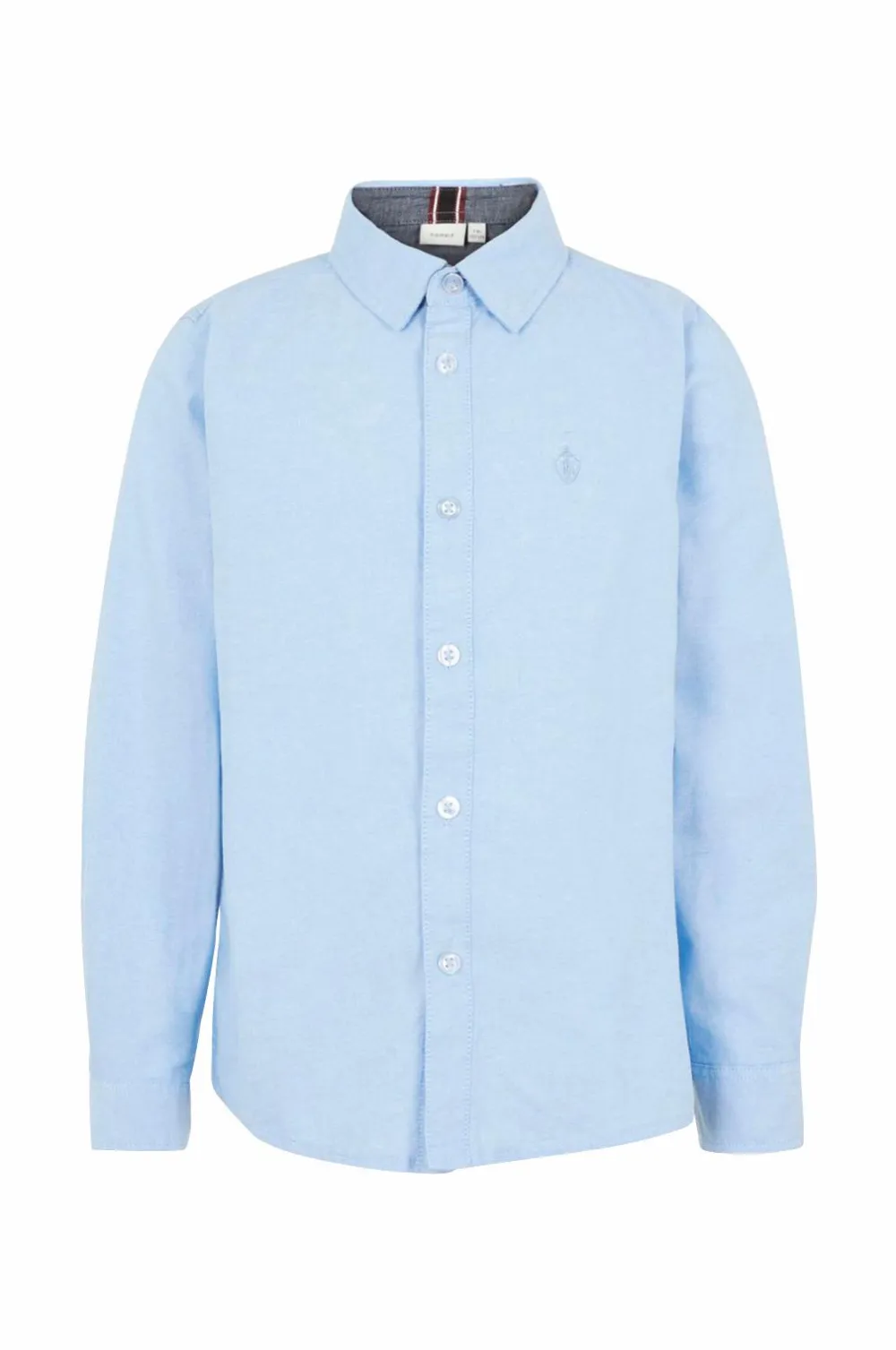 Skjorte i bomuld med et lille broderi på brystet. Manchet med en knap.