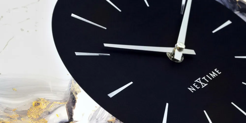 Nextimes vægur marble duo er indbegrebet af luksus. Det naturligt elegante mønster marble står i kontrast til de skinnende guldindekser og skaber et harmonisk indtryk, der passer til både moderne og klassisk interiør. Væguret fungerer lydløst og er designet til dem, der sætter pris på livets finere ting.