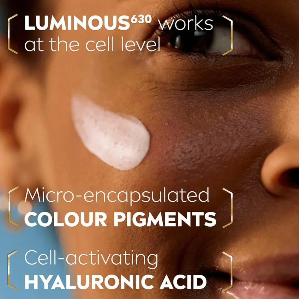 (2) Reduce: Den innovative formel med LUMINOUS630® reducerer synligt mørke pletter på bare 2 uger og udjævner hudfarven med imponerende +40% på 8 uger, hvilket sikrer et mere strålende udseende.*