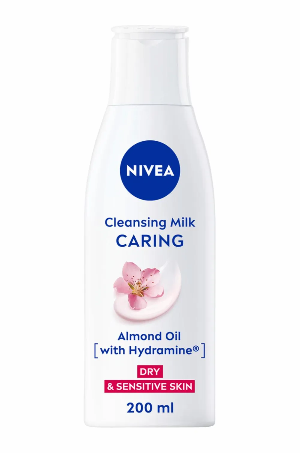 NIVEA Cleansing Milk Caring er en plejende rensemælk. Beriget med mandelolie renser denne ansigtsrens i dybden, fjerner make-up og mascara. Den fjerner tilmed vandfast makeup. Den milde og plejende formel indeholder også hydramin, som virker beroligende og fugtgivende.