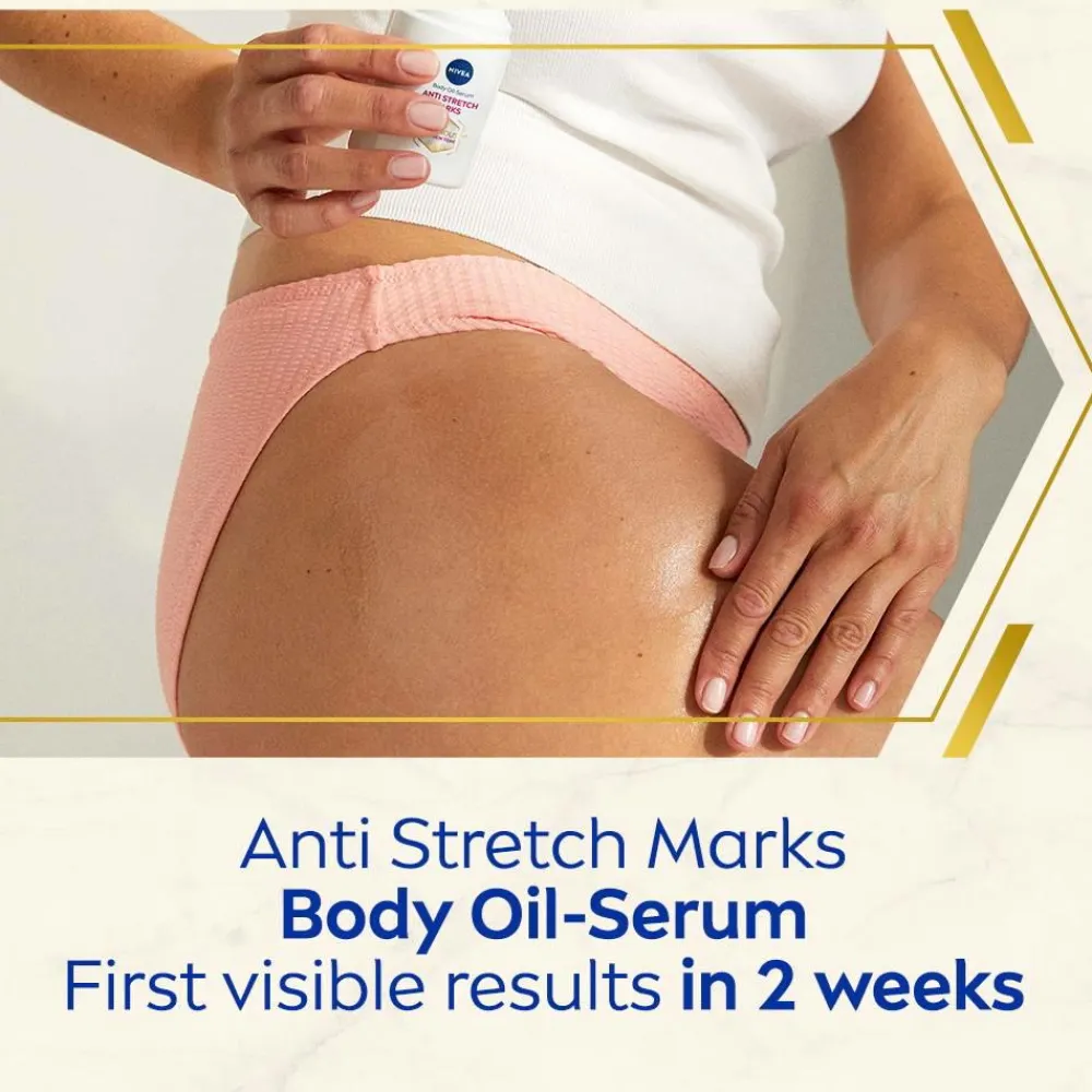 Det nye Luminous630 Body Oil-Serum Anti Stretch Marks er et serum til kroppen. Det er Niveas mest effektive olie til at reducere forekomsten af strækmærker fra graviditet, hormonelle ændringer og vægtændringer, med dokumenteret effekt efter 2 uger. Den ekstraordinære nye LUMINOUS630®-serie med jævn hudtone reducerer forekomsten af strækmærker fra dag ét og inden for to uger efter regelmæssig brug. Den unikke olieserumformel med det patenterede molekyle LUMINOUS630® balancerer hudens naturlige melaninproduktion og blødgør kontrasten mellem strækmærker og resten af huden. Olien er med til at forebygge nye strækmærker, men ældre strækmærker opfattes også som mindre synlige. Passer til alle hudtyper. Giver en øjeblikkelig blød hudfornemmelse og fugter huden i 48 timer.