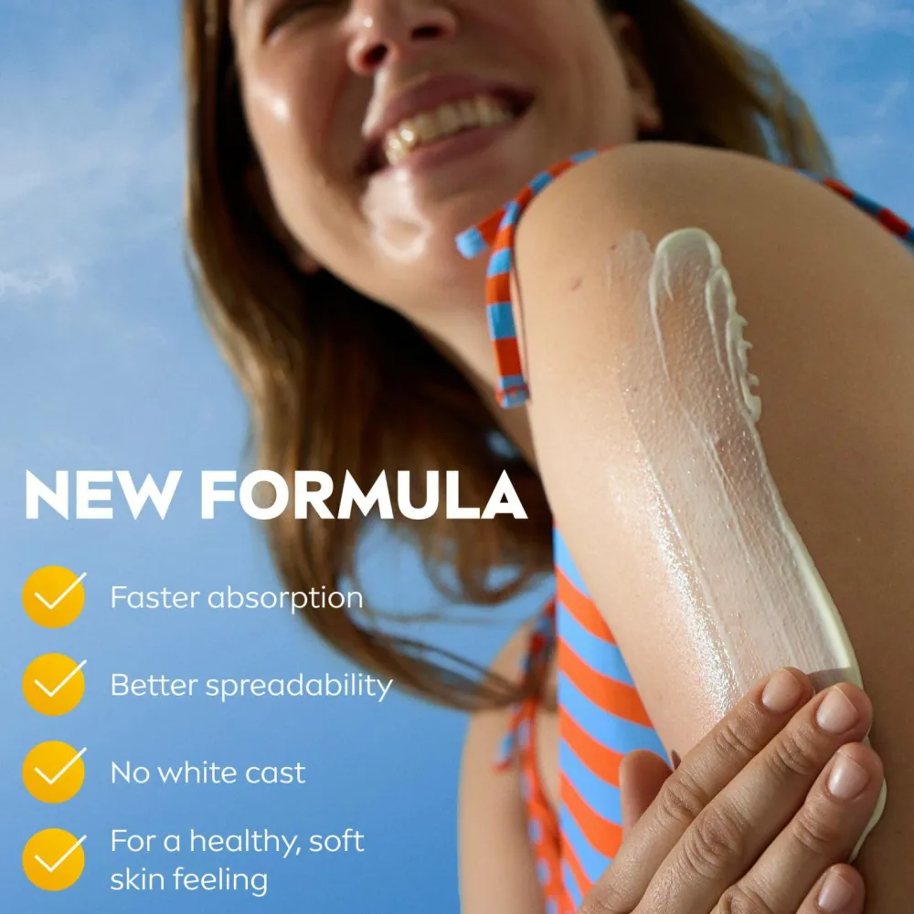 Nivea Sun Protect & Moisture Sun Lotion Spf 50+ er en solcreme med meget høj solbeskyttelse, der giver øjeblikkelig beskyttelse mod Uva og Uvb stråler samt for tidlig ældning af huden. Den nye formel med CitraCell-Protect, beriget med C-vitamin og hyaluronsyre, virker ud over UV-filtre ved at hjælpe huden med at danne en anden forsvarslinje og reducere oxidativ stress på celleniveau. Velegnet til alle hudtyper og dermatologisk testet. Ocean Respect-formlen respekterer havet ved at være fri for UV-filtre som Octinoxate, Oxybenzone og Octocrylene. Flasken er fremstillet af 96 % genbrugsmaterialer (undtagen hætte og etiket).
