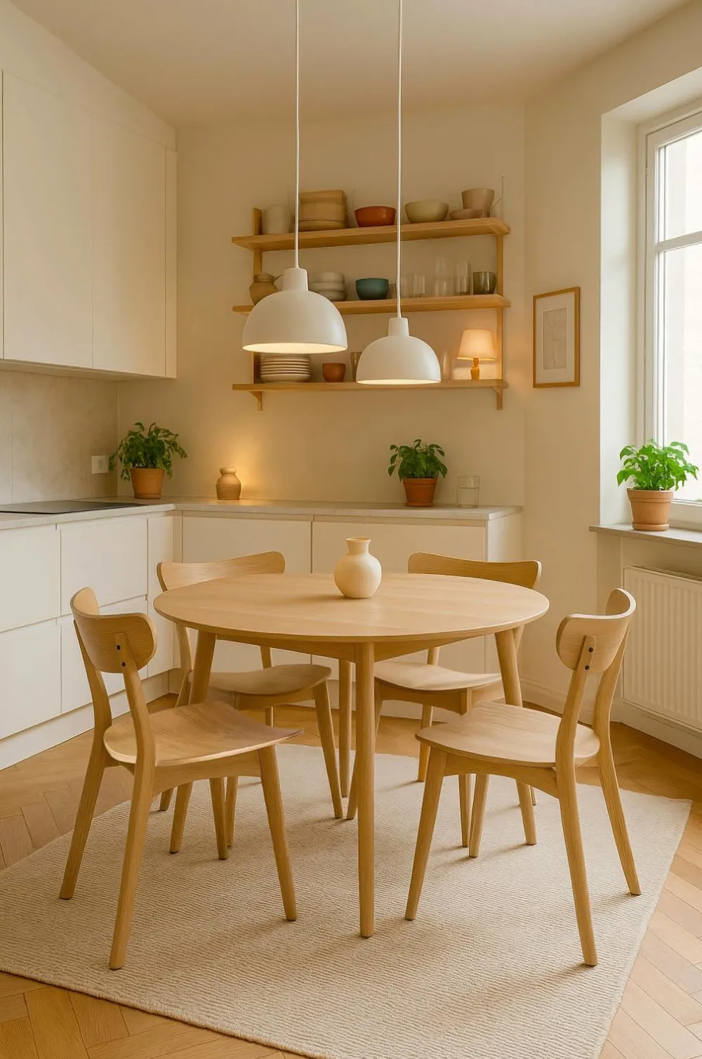 Roxby spisebordssæt, 105x105x76 cm. Dette spisebordssæt er formet af en blanding af retro og moderne design æstetik. Fremstillet i et naturligt egetræslook med en lakeret finish, skaber kombinationen af egefiner og egebejdsede træben en varm, elegant appel – perfekt til enhver lejlighed i spisestuen.