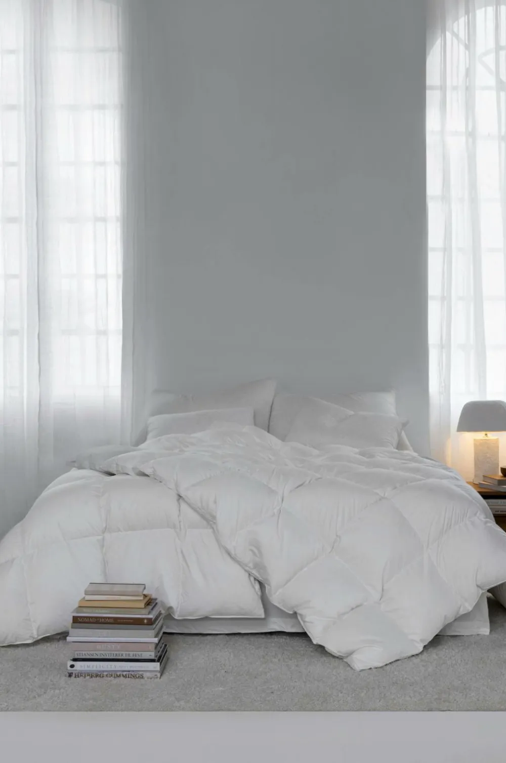 Den varmeste krammekammerat til kolde, lange nætter. Dynebetrækket er luftig, men ikke tungt – det omslutter dig med varme, der varer ved indtil daggry. Fjerindholdet giver en let vægt, der holder dynen tæt og rolig omkring din krop og fremmer en dyb og uforstyrret søvn. Fyldt med 90 % europæisk andedun og 10 % små fjer, hvilket giver høj fyldkraft og ekstra isolering. Fjerindholdet tilføjer også en let vægt, så dynen former sig jævnt og tæt omkring din krop. Betrækket er tæt vævet, let og blødt – et slidstærkt bomuldsstof, der sikrer fremragende åndbarhed og komfort mod huden. Fyldkraft: 725 cuin.