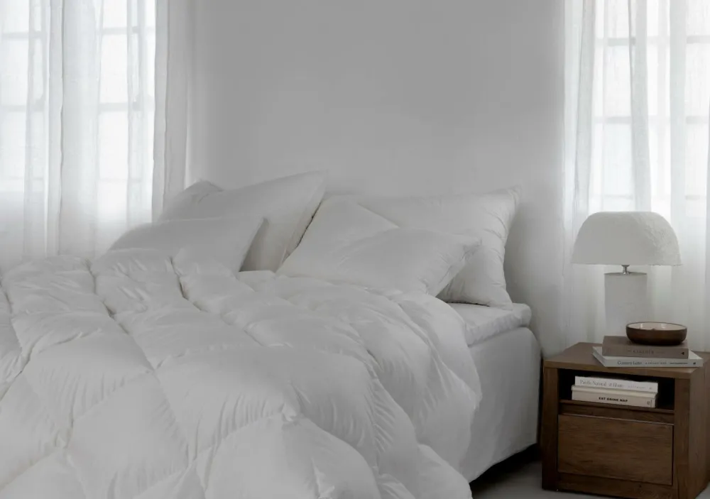 En ærlig dyne til dem, der nyder følelsen af at have noget over sig – selv på varme nætter. Denne kølige model giver en fastere og tungere fornemmelse, samtidig med at den holder en lavere temperatur. Dunkomfort til en fornuftig pris med overraskende hyggelig varme. Fyldet består af 50 % europæisk andedun og 50 % små fjer, hvilket skaber en tungere dyne med mindre volumen og fastere støtte. Fjerindholdet hjælper også dynen med at blive på plads mod kroppen. Betrækket er af let, åndbart bomuld af høj kvalitet, der sikrer stor komfort og naturlig fugttransport hele natten. Fyldkraft: 600 cuin.