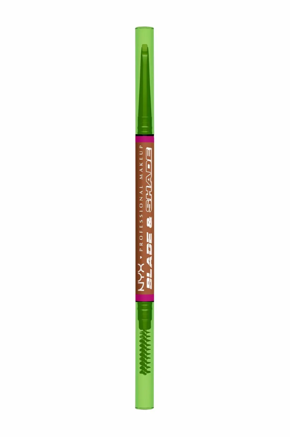 Blade & Shade er vores første øjenbrynsblyant med både skarp og flad spids for præcis optegning og naturlig skygge af brynene. Tegn små, nano-tynde streger, vend blyanten og børst for at skabe et look der er inspireret af microblading. Holder i op til 16 timer. Findes i mange nuancer. Tværer ikke ud og smitter ikke af.