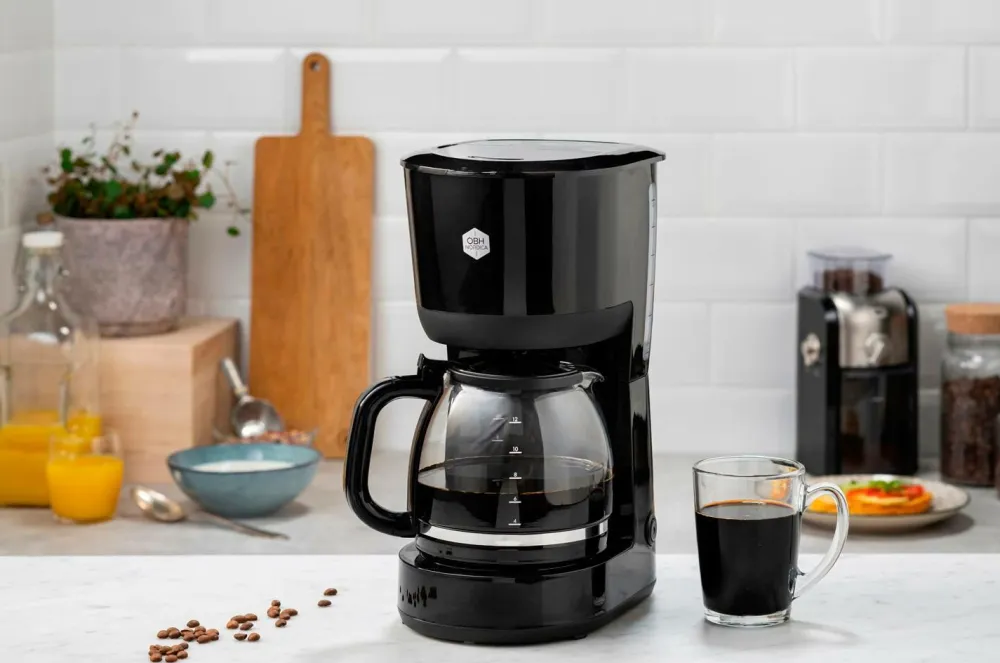 Kaffemaskine som brygger op til 12 kopper kaffe og lukker automatisk efter 40 minutter.