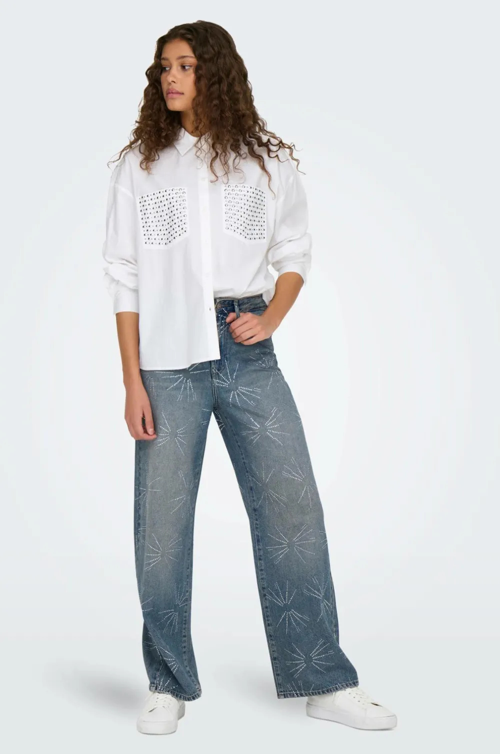 • Jeans i bomuld med rhinstensudsmykning