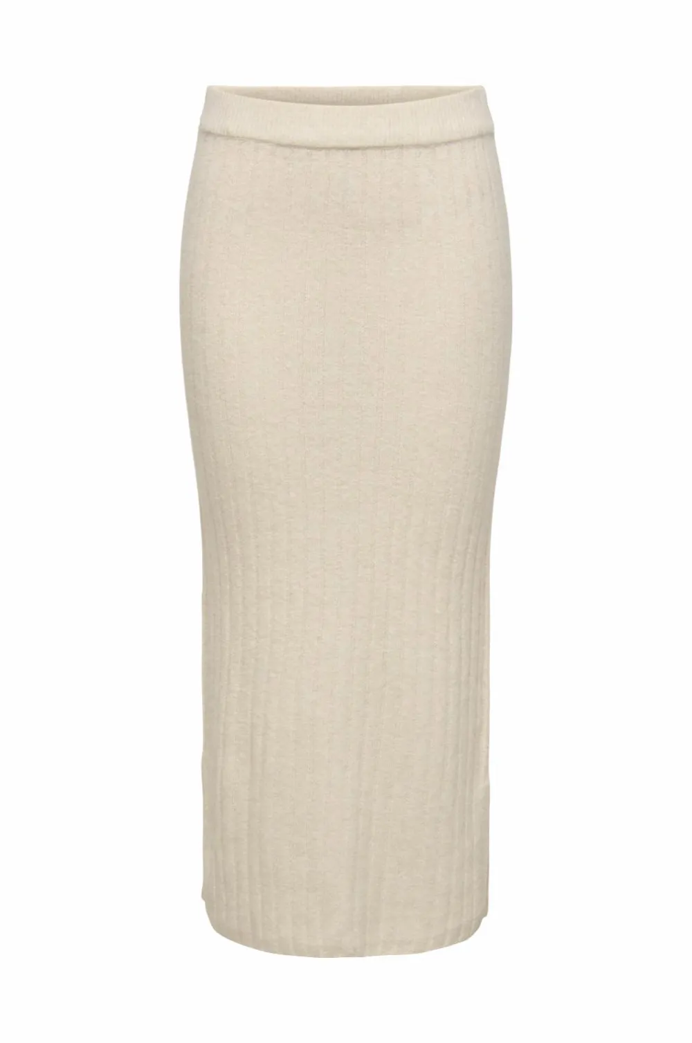 • Lang, ribstrikket nederdel