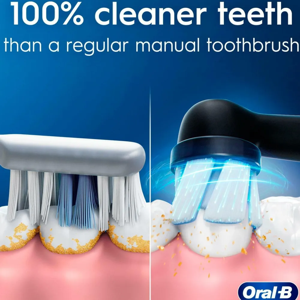 – 100 % renere tænder end med en almindelig manuel tandbørste