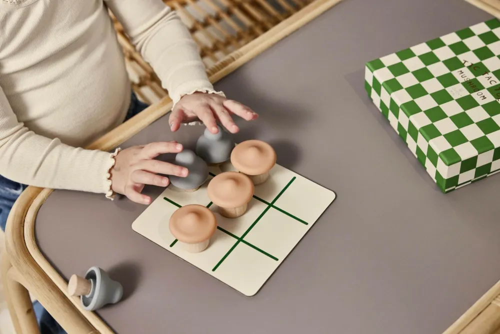 mushroom tic tac toe-spillet er en legende blanding af sjov og dekoration. Med brikker, der er formet som svampe, gør dette spil legen mere sjov. Det er pakket i en dekorativ æske og er perfekt som gave eller til at stille frem, når det ikke er i brug. Lad det sjove begynde med dette charmerende twist på et klassisk spil!