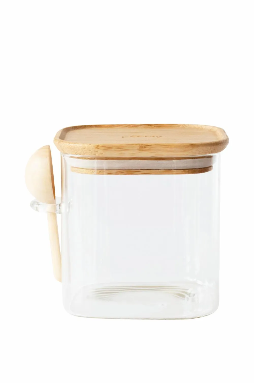 Pebbly Høj glasdåse med bambuslåg og måleske – 800 ml Gennemsigtig Online