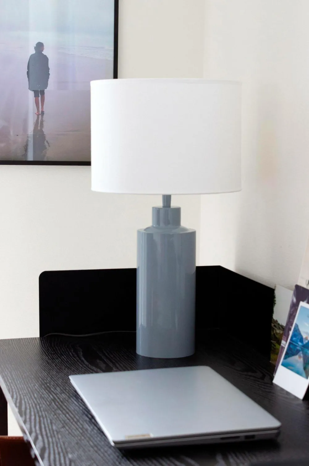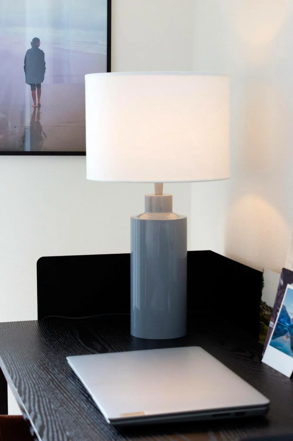 Lampefod solo i metal. En pæn, moderne bordlampe, som vil passe ind mange steder. Plastledning 170 cm med afbryder. E27-fatning. Justerbar fatning. Den samlede højde er 32 cm.