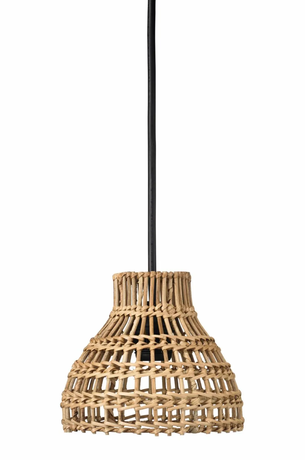 Sarah er en skærm i flettet rotting. Skærmen har en unik form og fletværk slipper lyset igennem og skaber et smukt skyggespil. Den kan bruges både som hængende pendel eller som skærm på en lampefod. Eftersom det er en skærm i naturmateriale trives den bedst tag, i en udestue eller indendørs. Leveres med 1,2 meter sort ledning med baldakin. Højde 18 cm. Diameter 18 cm. Lampeudtag til loftet indgår ikke på grund af et nyt EU-direktiv. De kan bestilles separat.