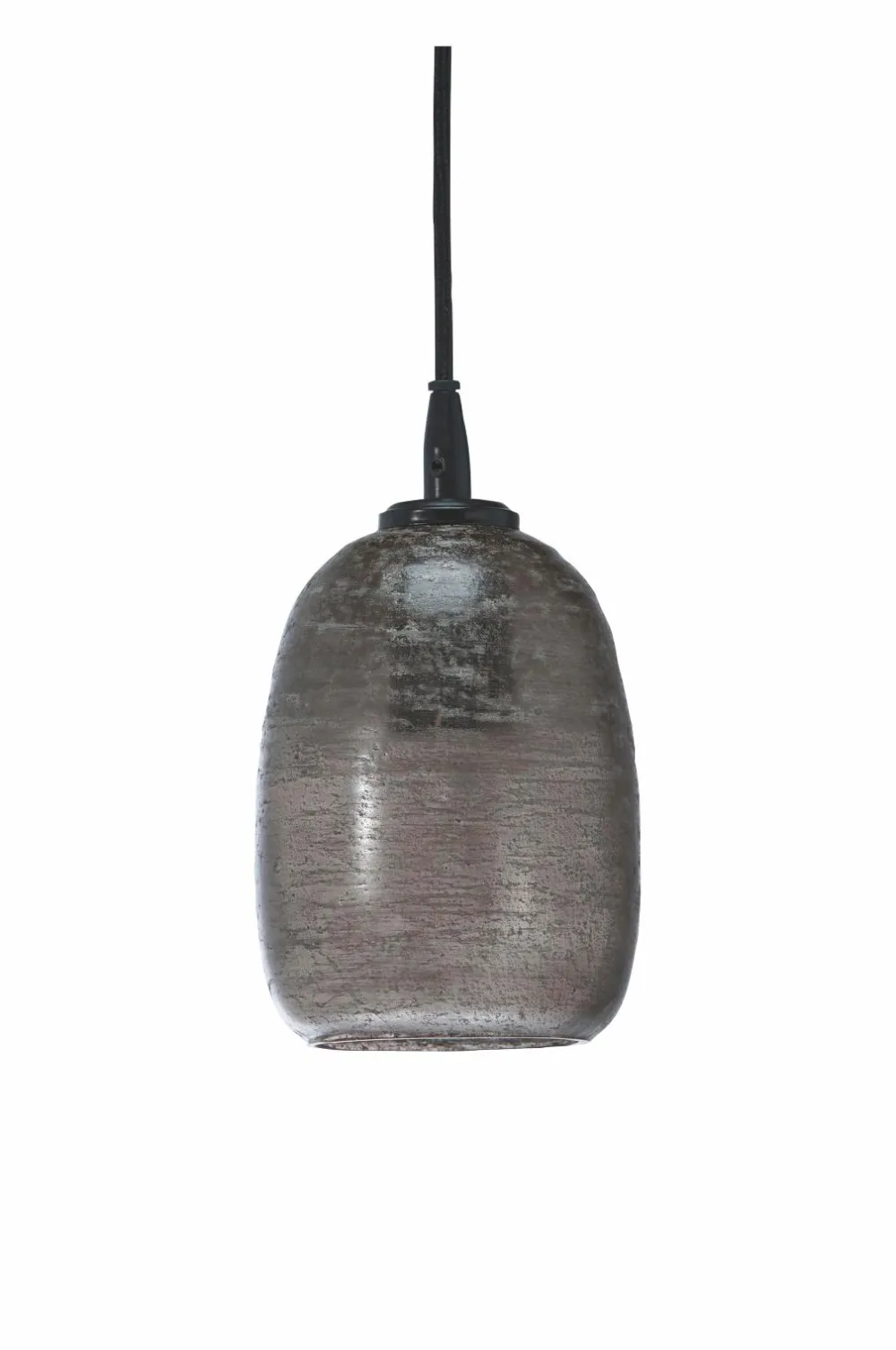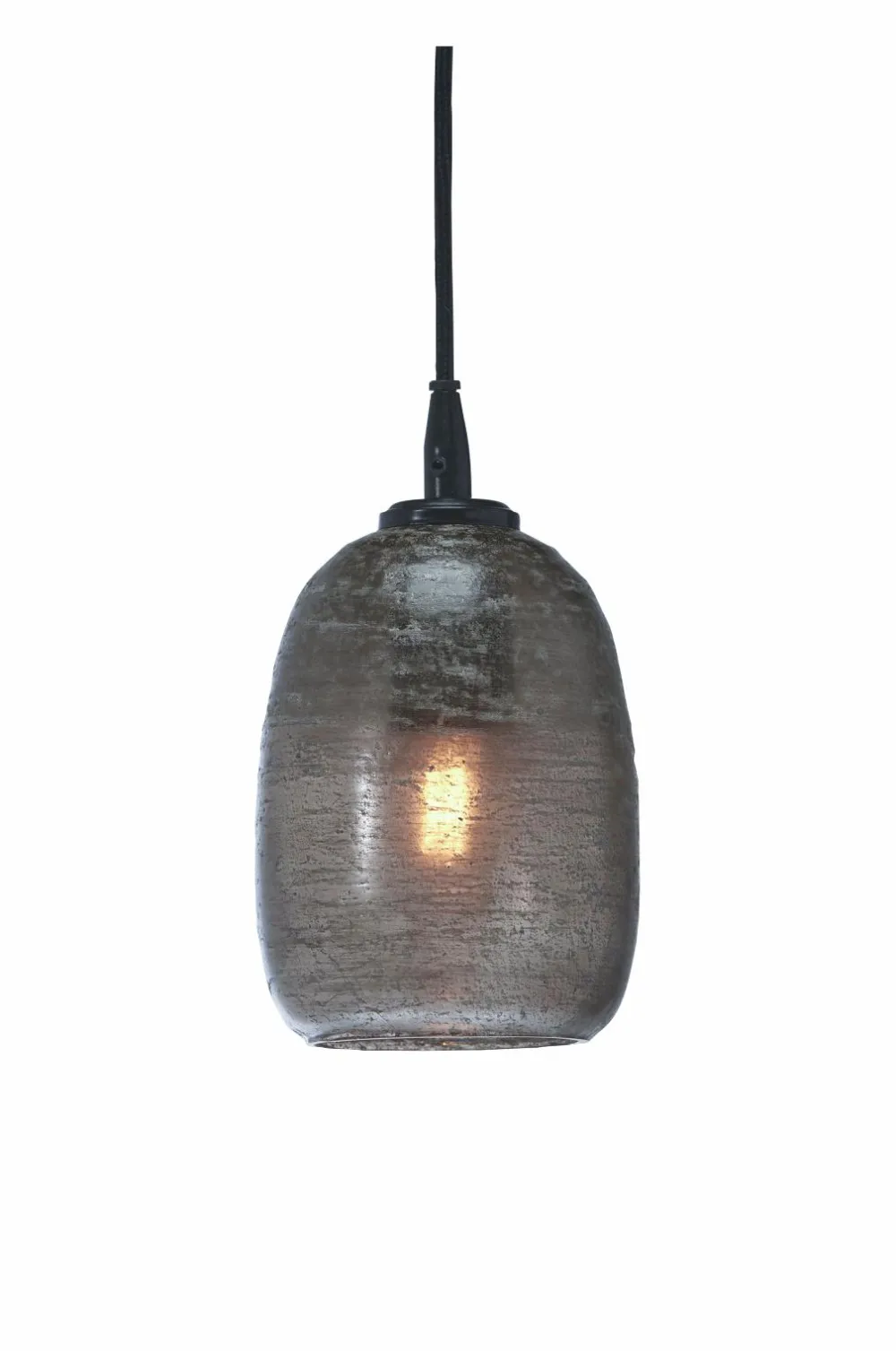 Pendel Jonna i glas med vintage-effekt. Fin både i vinduet eller over køkkenbordet. 3 meter lang stofledning med stik til vægudtag. Pære købes separat.