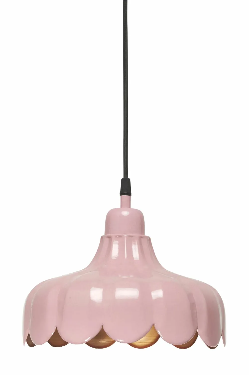 Vores serie Wells giver dit hjem et frisk og romantisk udtryk. Vi er blevet inspireret af en blomst og har skabt denne serie med loftlampe, pendel og bordlampe i 4 farver, rosa, grøn, hvid og sort. Alle har guldfarvet inderside som spreder et varmt og skønt lysskær. Hver enkelt skærm er håndlavet. Wells vil pryde dit hjem med sine feminine former og lækre farver. Mål: højde 21 cm, bredde 24 cm og dybde 24 cm. Maks. 25 W. Pære medfølger ikke. Stofledning 3,5 meter med vægkontakt.