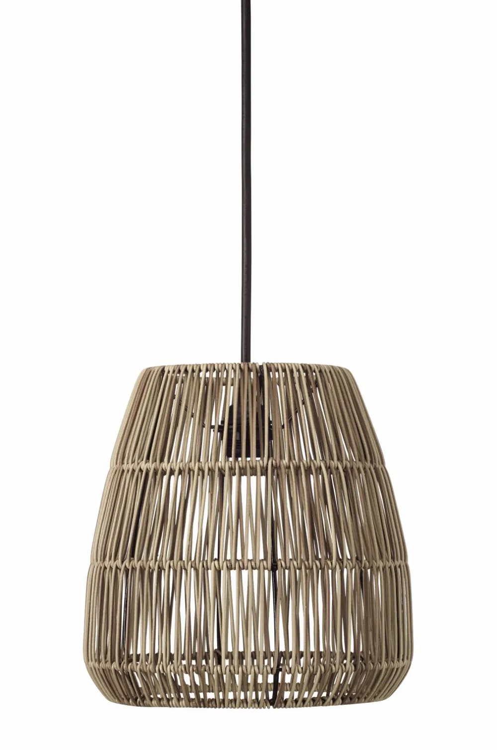 Saigon, en udendørsskærm i kunstrotting. Kunstrotting er et robust materiale, som tåler vejr og vind. Den flettede struktur skaber et smukt lysspil. Kombineres med Flex Out loftophæng til udendørs brug. Dette er ikke inkluderet og skal købes separat. Højde 30 cm. Diameter 28 cm.