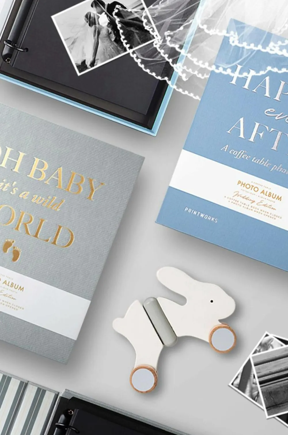 Fotoalbum til dine babybilleder. Indeholder 30 sider af fotopapir i høj kvalitet i størrelsen 21×28 cm og du kan nemt fastgøre dine fotos med Printworks-klistermærker eller fotohjørner. Hvis du skal bruge flere sider, kan du bare tilføje ekstra fotopapir. Fotoalbummet har plads til 40 sider. Materiale: 18% polyester, 2% bomuld, 55% gray board (genindvundet papir/karton), 15% papir og 10% metal. Albummets størrelse: 26×31,5×5 cm.