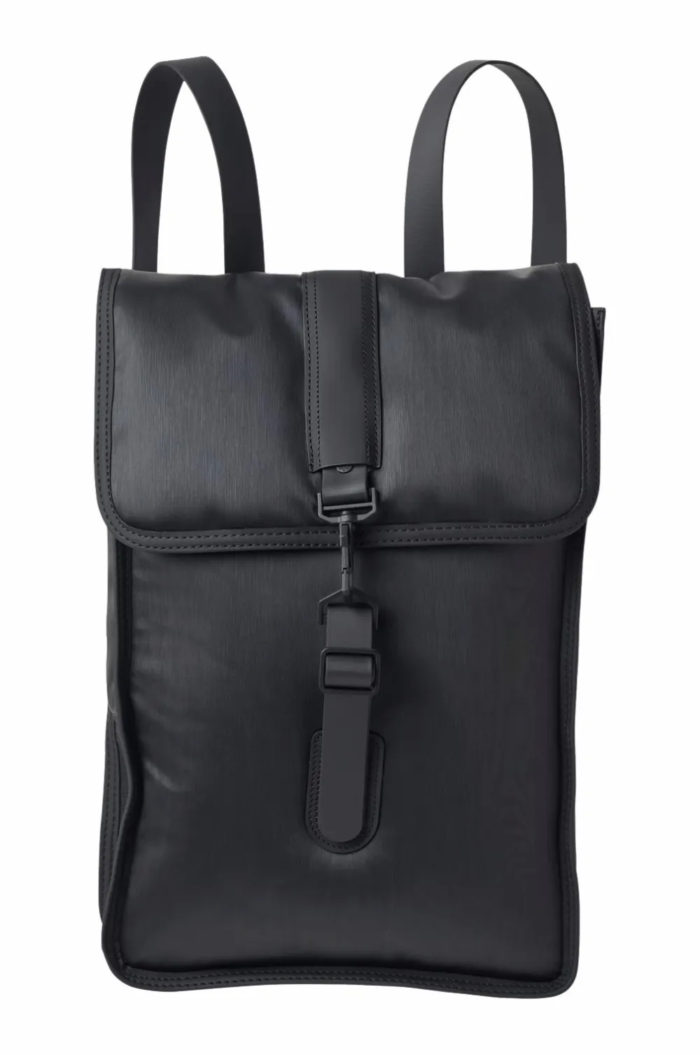 Rygsækken er fremstillet af Rains’ karakteristiske vandtætte PU-stof, som er designet med henblik på holdbarhed, styrke og en blød fornemmelse.