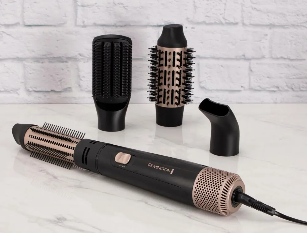 Varmluftsbørste på 1000 W tilpasset personer med mellemlangt til langt hår. Vælg mellem to varme- og hastighedsindstillinger samt en koldluftfunktion til at fiksere håret.