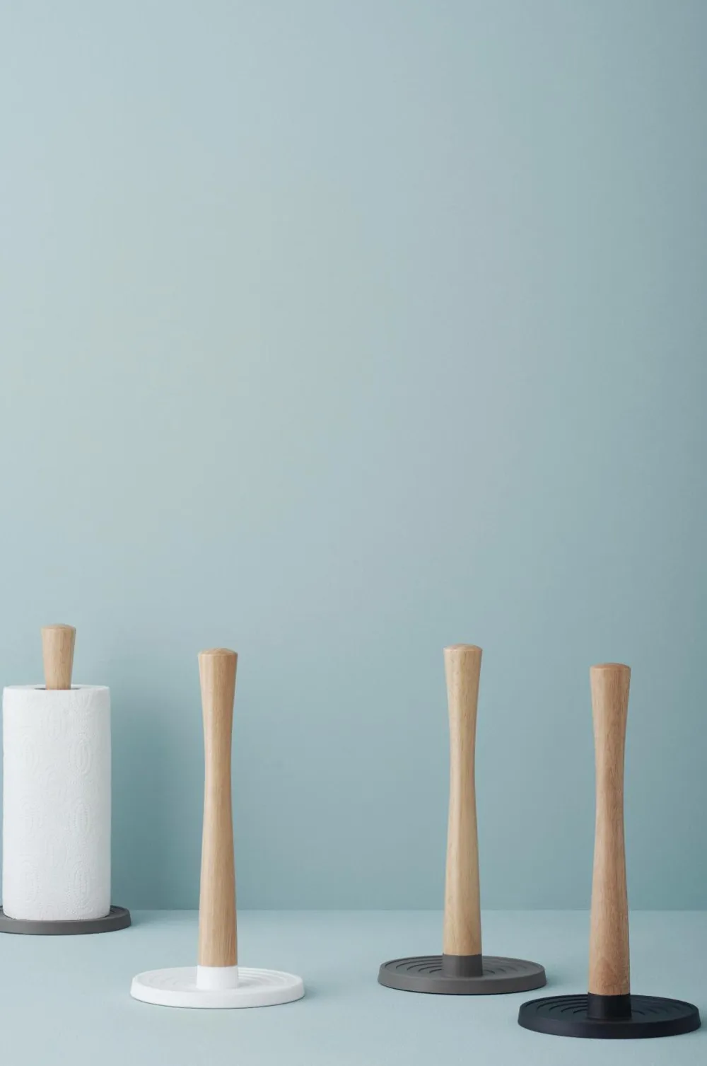 Køkkenrulleholder fra Rig-Tig i praktisk og stilrent design. Den står stabilt på bordet og takket være riller forneden så rulles papiret ikke ud.