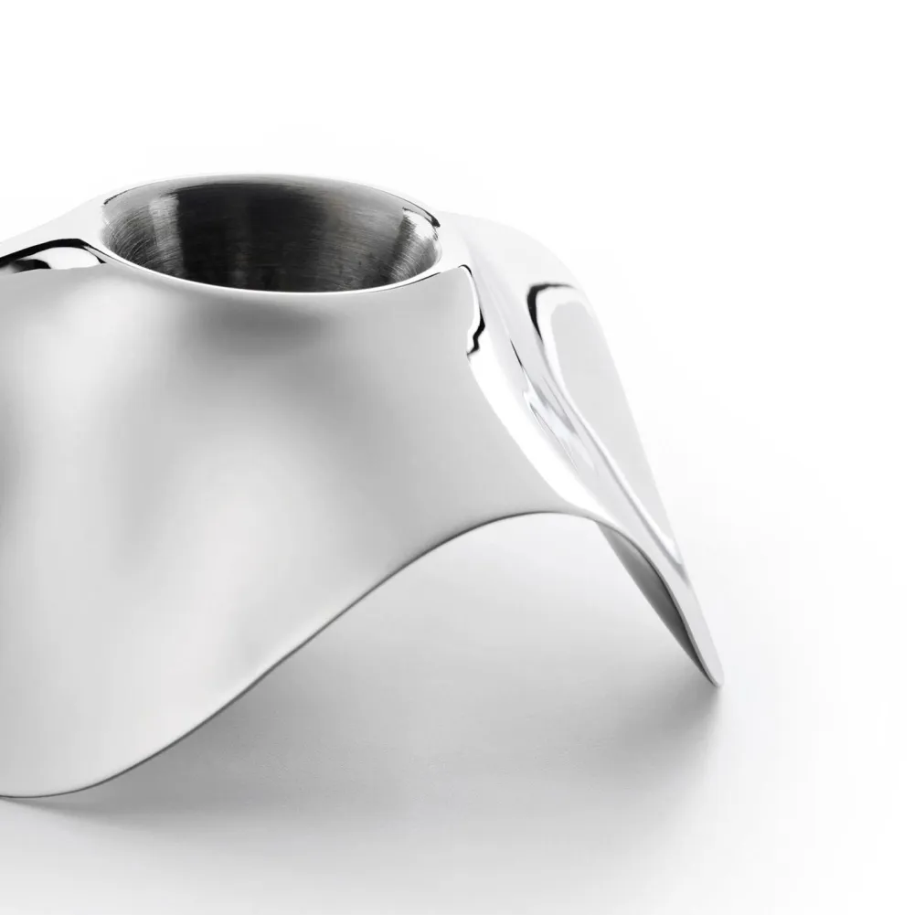 Med en elegant og subtil bølgende form formidler Drift-lysestagerne et luksuriøst udtryk. Fine at placere ved siden af hinanden men også stilfulde hver for sig. Fremstillet af blankpoleret 18/10 rustfrit stål. Bredde 8,5 cm. Højde 3,5 cm.