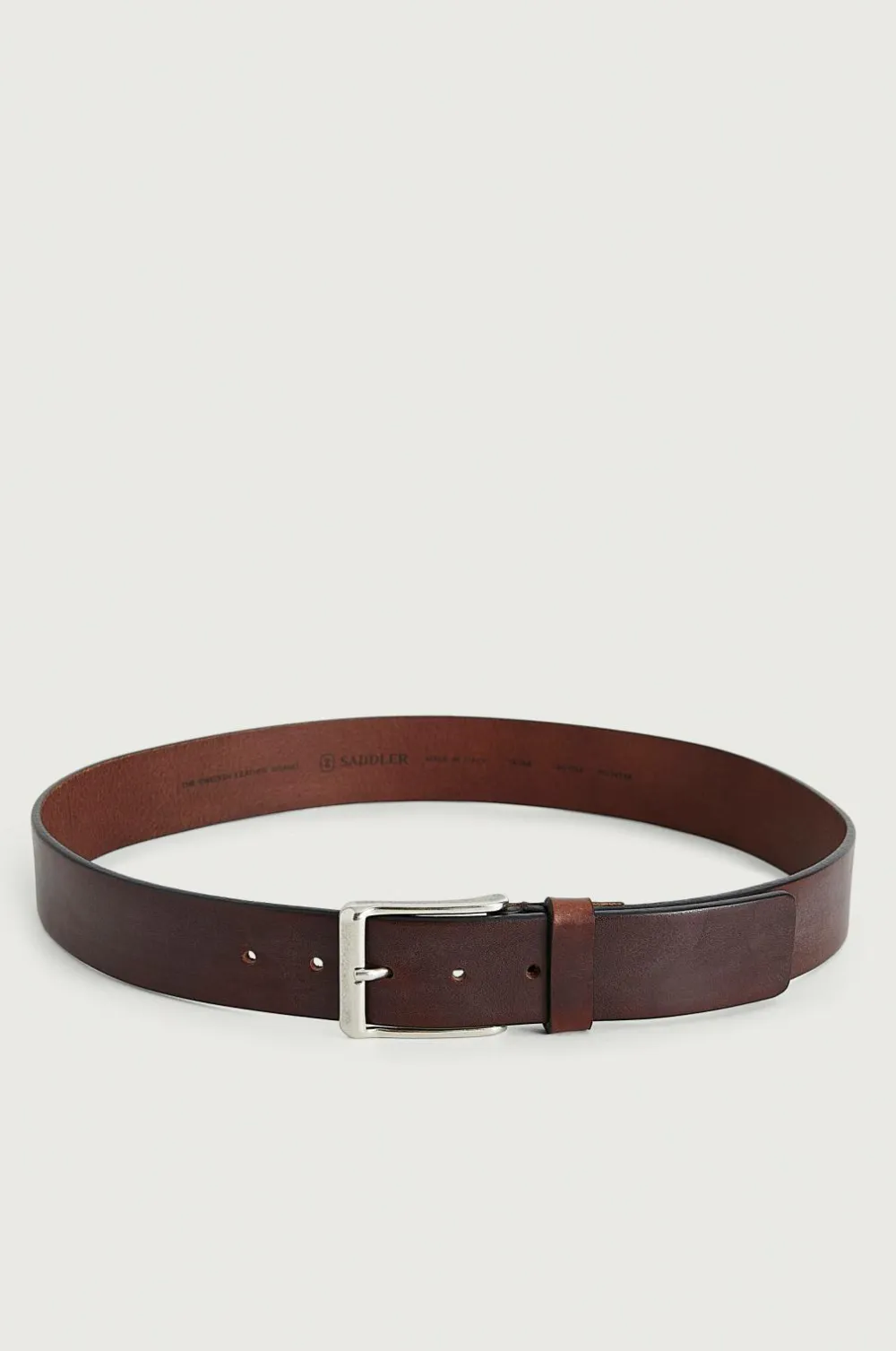 Bælte Hermann fra Saddler. Model i kraftigt skind med spænde i metal. Bredde ca. 4 cm.