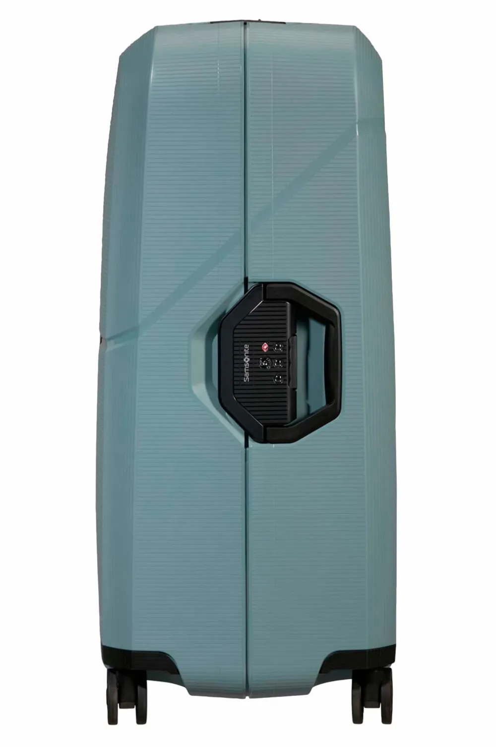 Kuffertens skal er lavet af genindvunden emballage og indersiden af kufferten er fremstillet af 100% genindvundne PET-flasker. Materialets fleksibilitet kombinerer uovertruffen styrke med overlegen lethed. Magnum Eco skiller sig ud med den nyeste teknologi for sit 3-punkts låsesystem, som giver uovertruffen holdbarhed.