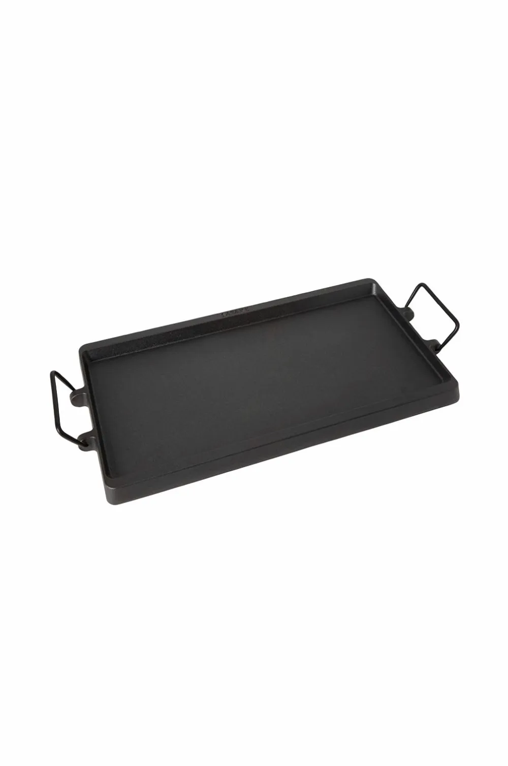Satake støbejernsgryde teppanyaki/grillplade designet til at forvandle dit hjemmekøkken til en professionel og inspirerende madlavningsstation. Denne robuste og alsidige stegeplade er et must-have for enhver madentusiast. med en størrelse på 47,5 x 25 cm (51,4 cm inklusive foldehåndtagene) dækker stegepladen to kogeplader og giver masser af plads til at tilberede flere retter eller portioner på én gang. fremstillet af støbejern af høj kvalitet, der giver overlegen stabilitet og varmefastholdelse, hvilket sikrer jævnt tilberedt mad ved hver brug. Udstyret med foldbare håndtag, der ikke bliver varme under tilberedningen, hvilket gør det nemt og sikkert at håndtere stegepladen, selv når den er varm. Stegepladen er designet specielt til indendørs brug og fungerer perfekt til induktion, keramiske kogeplader, el- og gaskomfurer, og kan også bruges som bagestål i ovnen. Ideel til en række forskellige retter, fra smashburgere og entrecôte til schnitzel og asiatisk madlavning som yakiniku, yakitori…