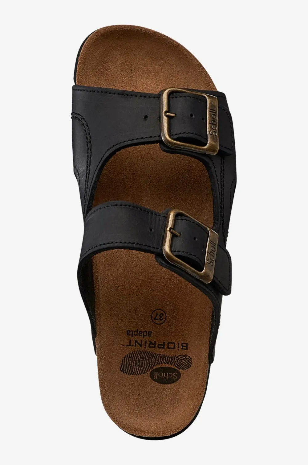Sandaler Moldava Wedge AD fra Scholl med anatomisk fodseng i kork og gummi fremstillet med Scholls unikke Bioprint-teknologi, som bidrager til en naturlig gang. Fodsengen er fleksibel og har en høj svang og stabil hælform som holder foden på plads og giver en jævn vægtfordeling. Justerbare remme i olieret læder med blødt for.