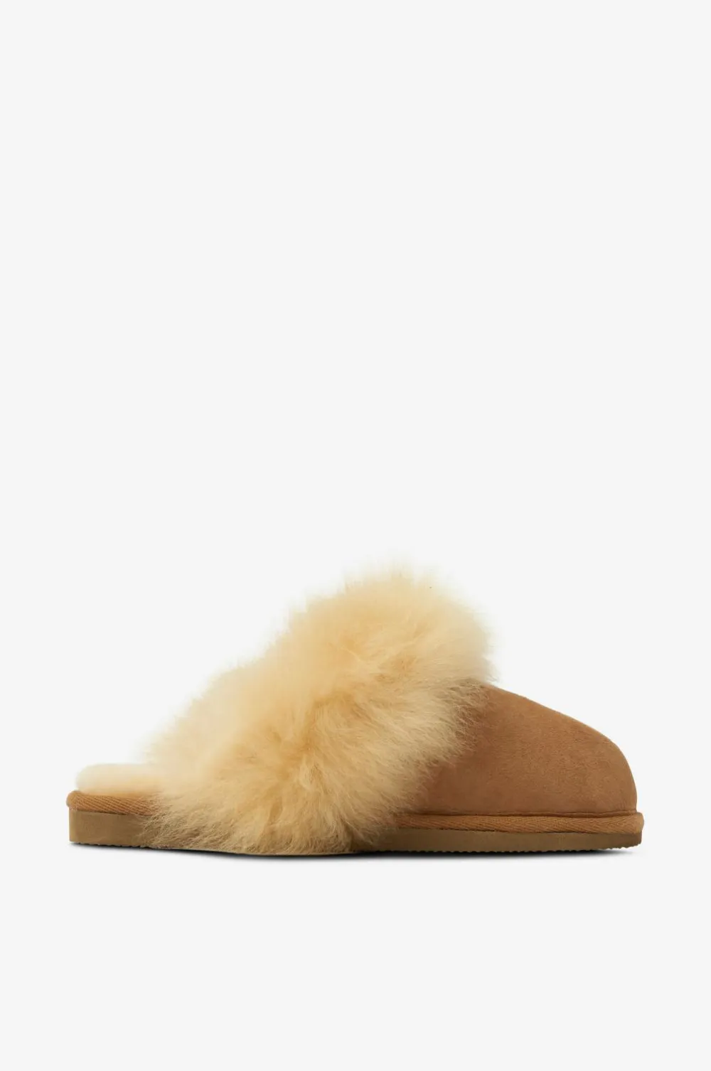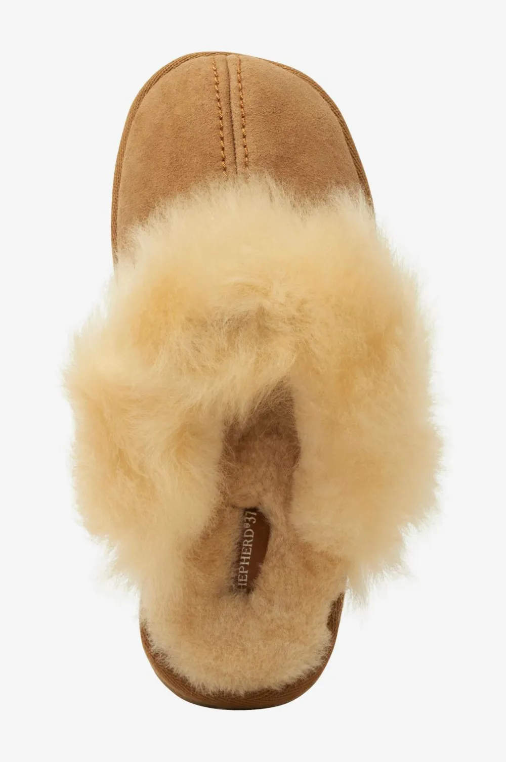 Hjemmesko Evelina fra Shepherd er en luksuriøs slip on i ægte fåreskind med pelset kant i åbningen. Skønt dæmpende sål med finriflet slidsål.