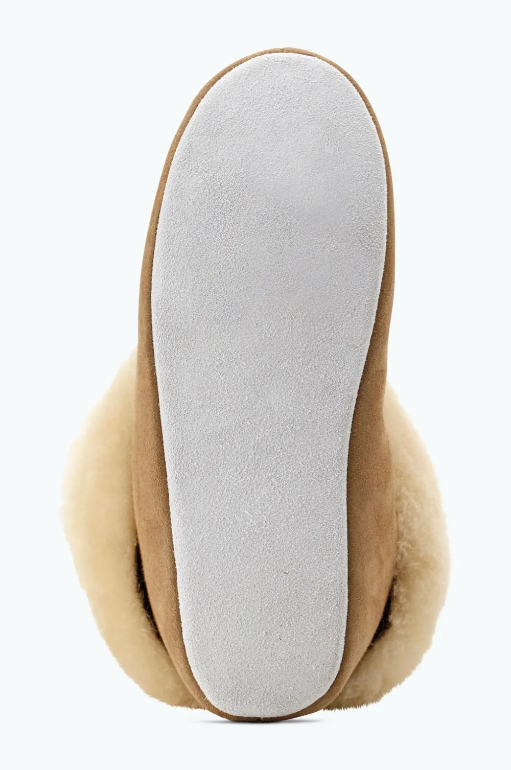 Hjemmesko i lammeskind Moa fra Shepherd er en varm og dejlig hjemmesko i træk-på-model med foldbart skaft. Hjemmeskoene er af ægte lammeuld som varmer og er åndbart. Paspoleret kant i tekstil.