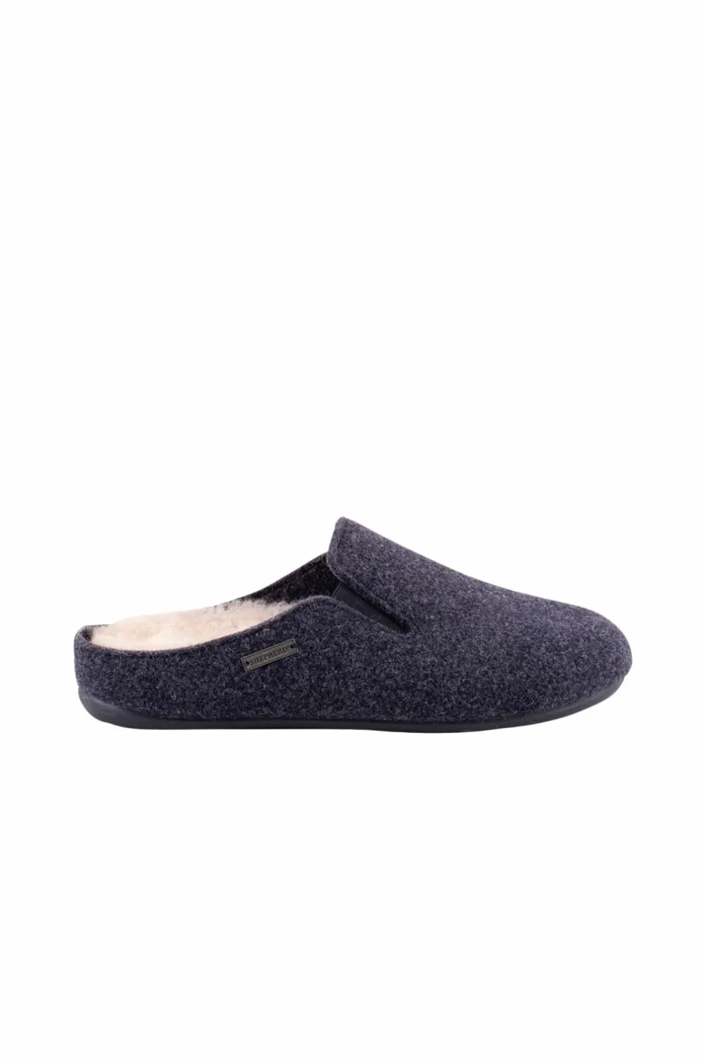 Shepherd chris er et par varme hjemmesko lavet af uld. De har elastik i siderne, en blød indersål af fåreskind, og ydersålen er lavet af gummi.
