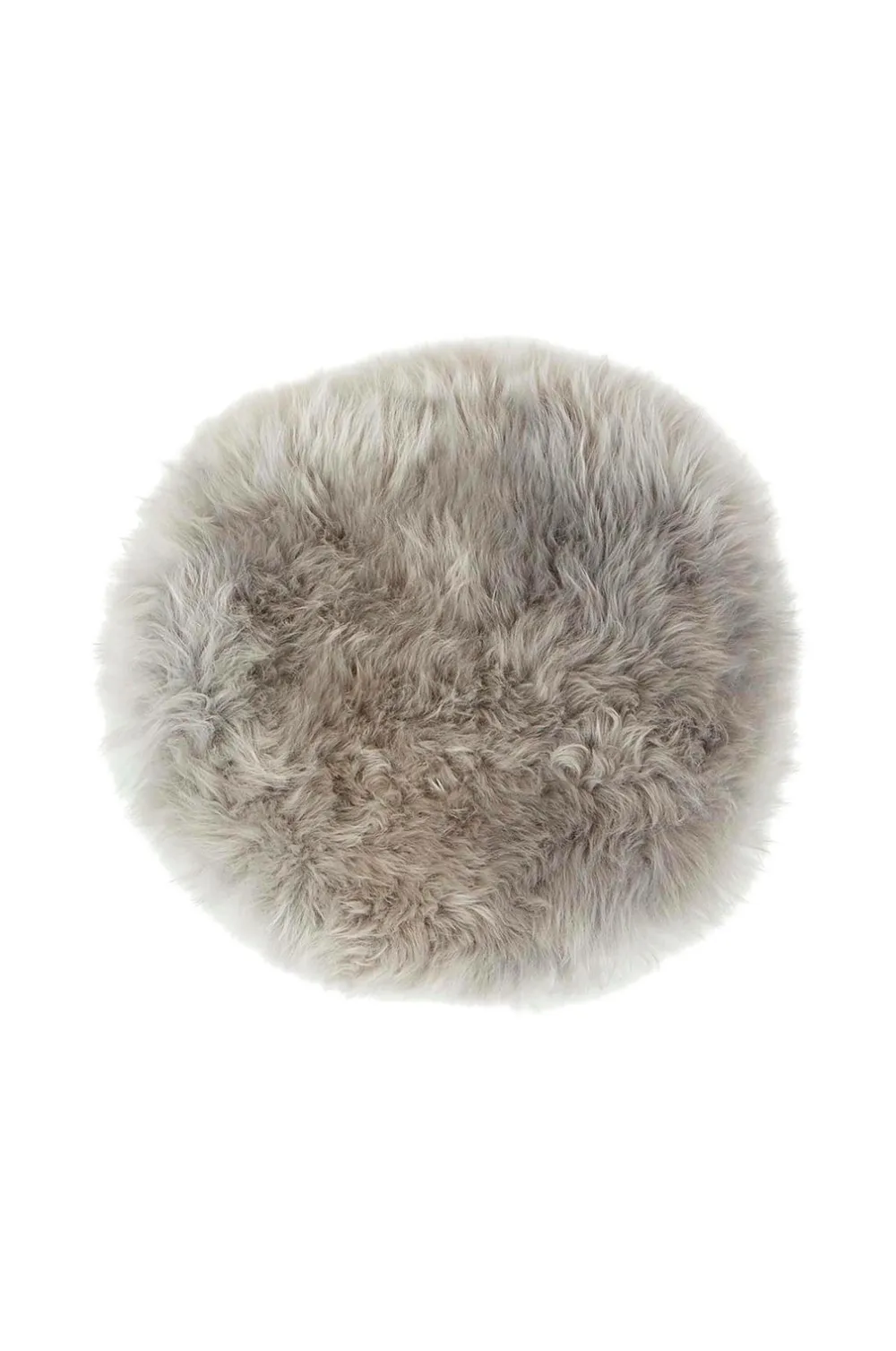 Shepherd molly. En blød stolehynde lavet af langhåret fåreskind. Alle fåreskind er naturlige og kan derfor variere ud fra deres naturlige struktur. Underside i ufarvet læder. 36 cm ø