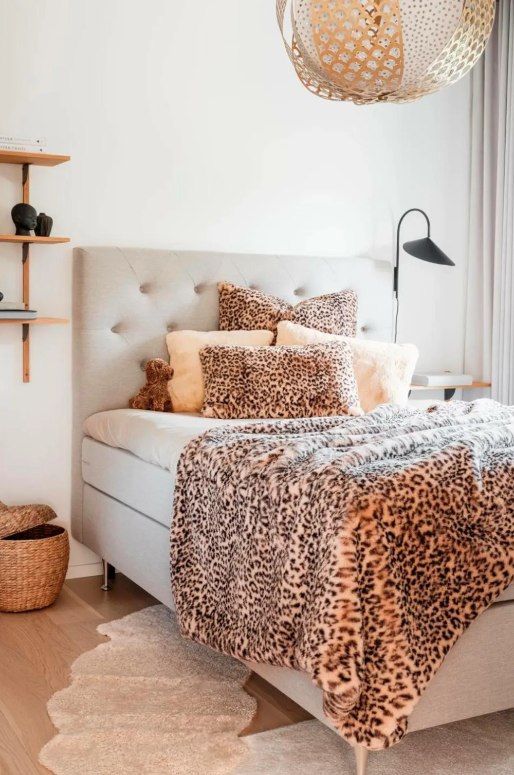Blød og trendy plaid/sengetæppe med klassisk leopardmønster. Indret med stil og attitude. Bagsiden er dejlig plys i en matchende farve. Matchende puder er tilgængelige. Maskinvask ved 30 grader. Materiale: polyester.