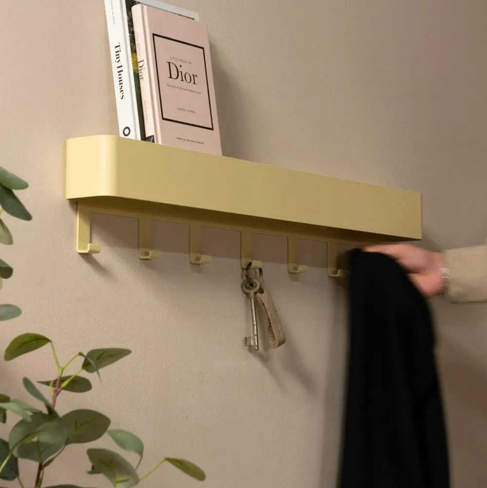 Dax play er en robust og moderne knagerække, der passer ind i næsten enhver indretning. Denne knagerække i pulverlakeret stål er ideel til små(re) rum. Når du kommer ind i rummet, kan du straks lægge dine nøgler eller din telefon oven på stativet. Dax play knagerækken fås med 3, 5 eller 7 kroge og ser godt ud i gangen eller soveværelset. Vores tip: style hylden på toppen med et flot stykke tilbehør for at skabe lidt ekstra stemning.