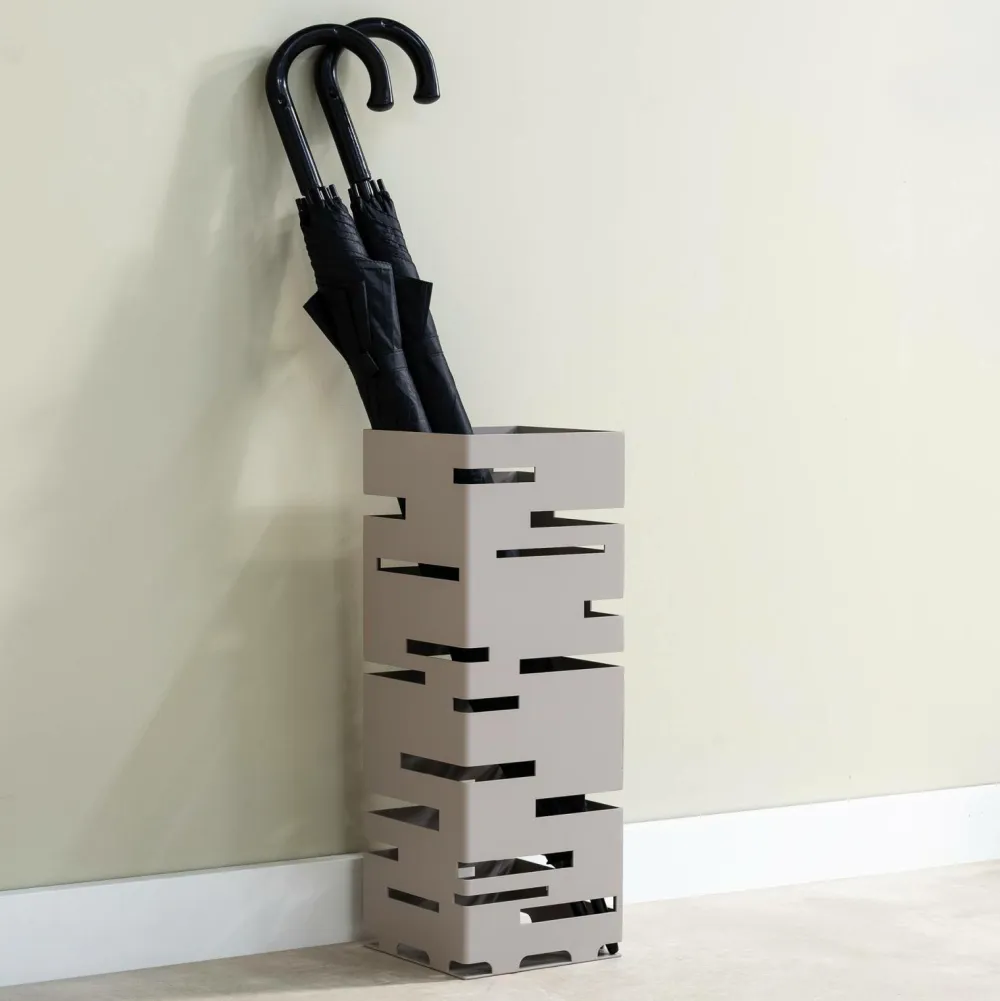 Vores moderne paraplyholder har et minimalistisk design, der er perfekt til at holde din indgang organiseret og stilfuld. Paraplyholderen er lavet af bæredygtigt stål, er pladsbesparende og nem at vedligeholde. Sig farvel til vandpytter på gulvet!