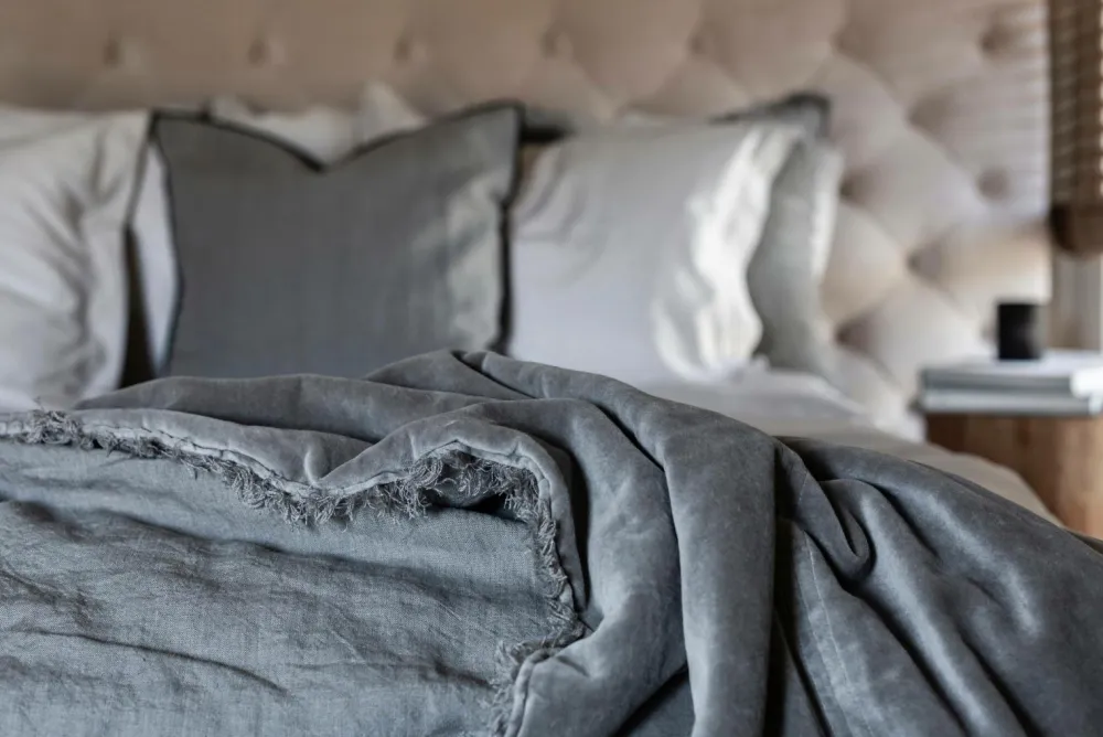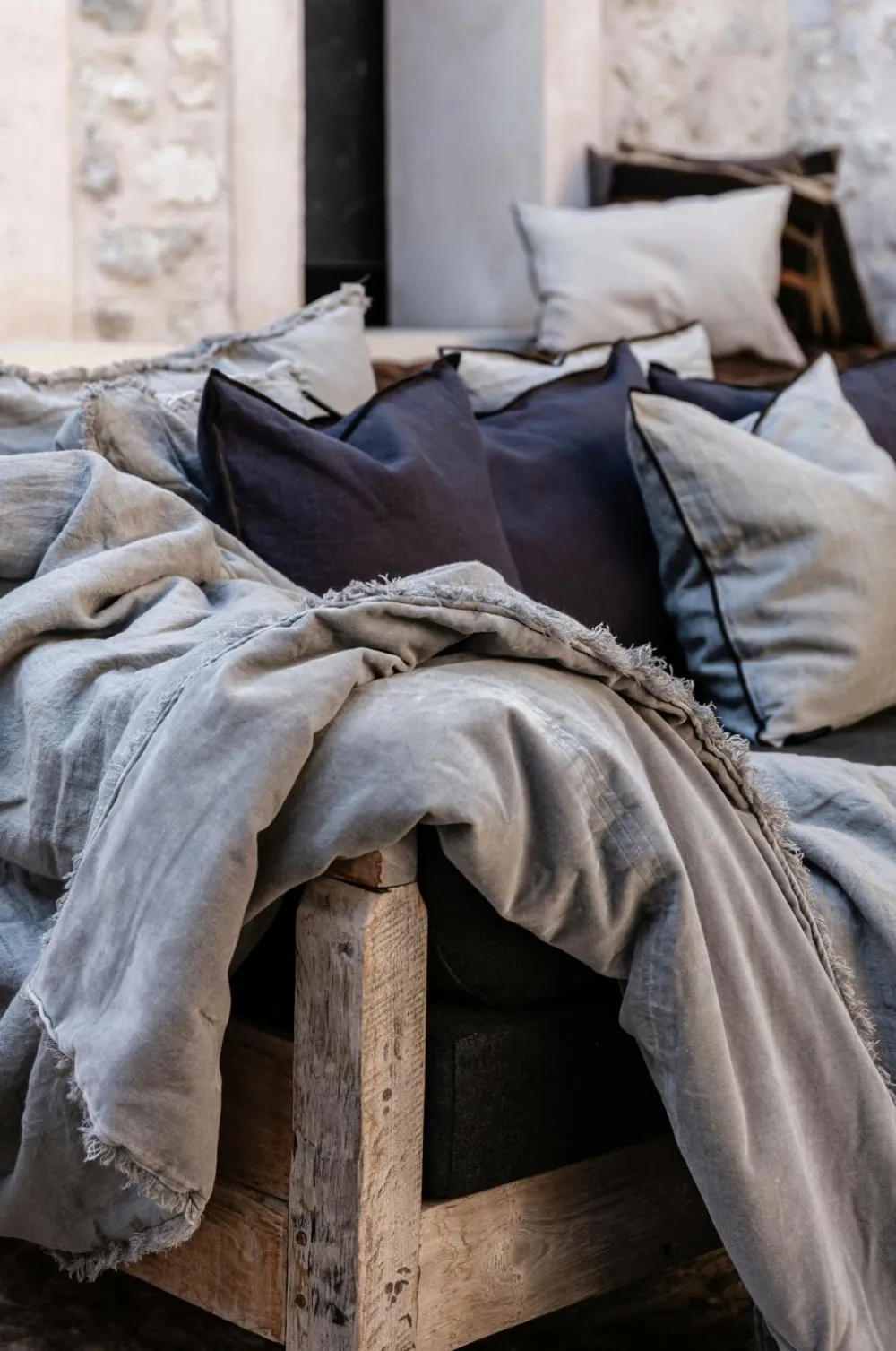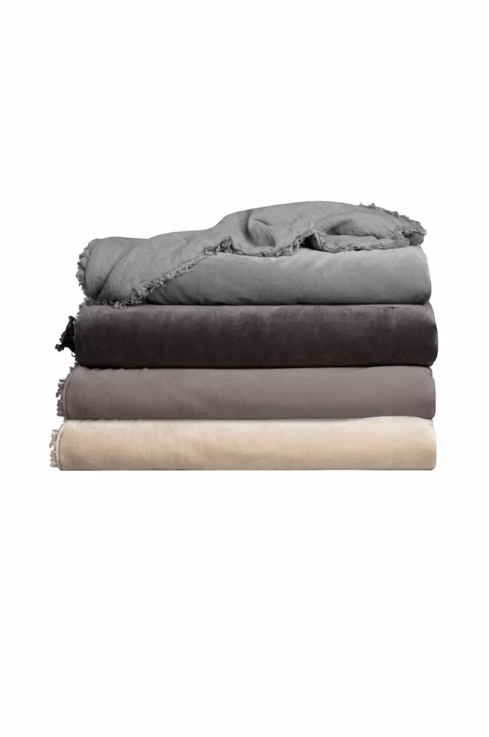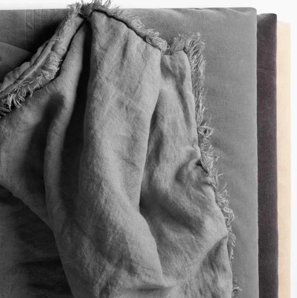 Sengetæpper er en vigtig detalje i indretningen. Vi har designet vores sengetæpper med luksuriøst fløjl på den ene side og naturligt vasket linned på den anden, så du nemt kan ændre udseendet på dit soveværelse. Med andre ord, to alternativer til det humør, du vågner op med. Eller hvilken som helst årstid. Flossede kanter giver et afslappet og naturligt look.