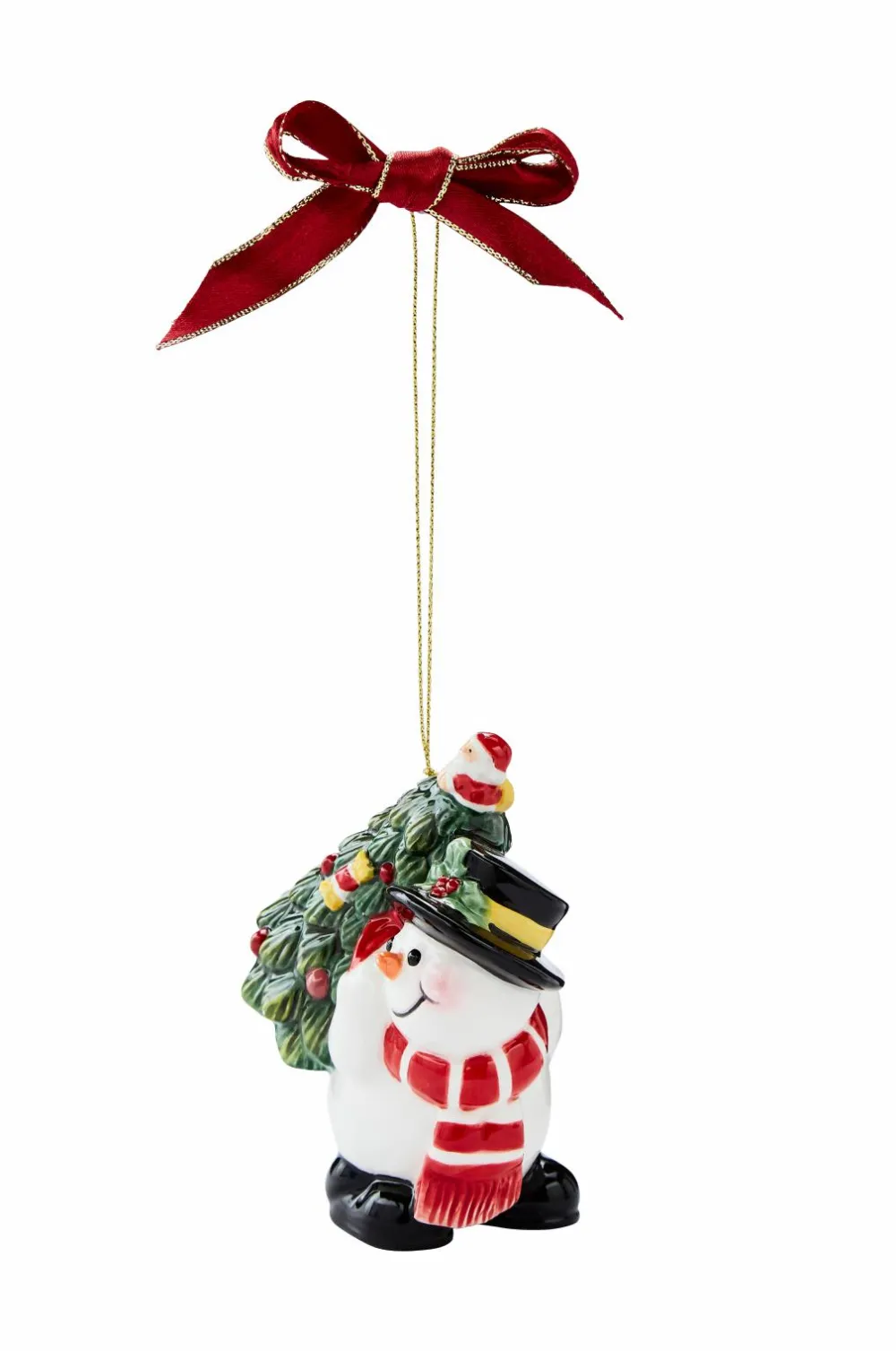 Føj til din samling af juletræspynt med denne dejlige snemand. Den muntre snemand er klædt i rødt og hvidt tørklæde og sort høj hat og bærer et miniaturejuletræ fra Spode i sine arme.