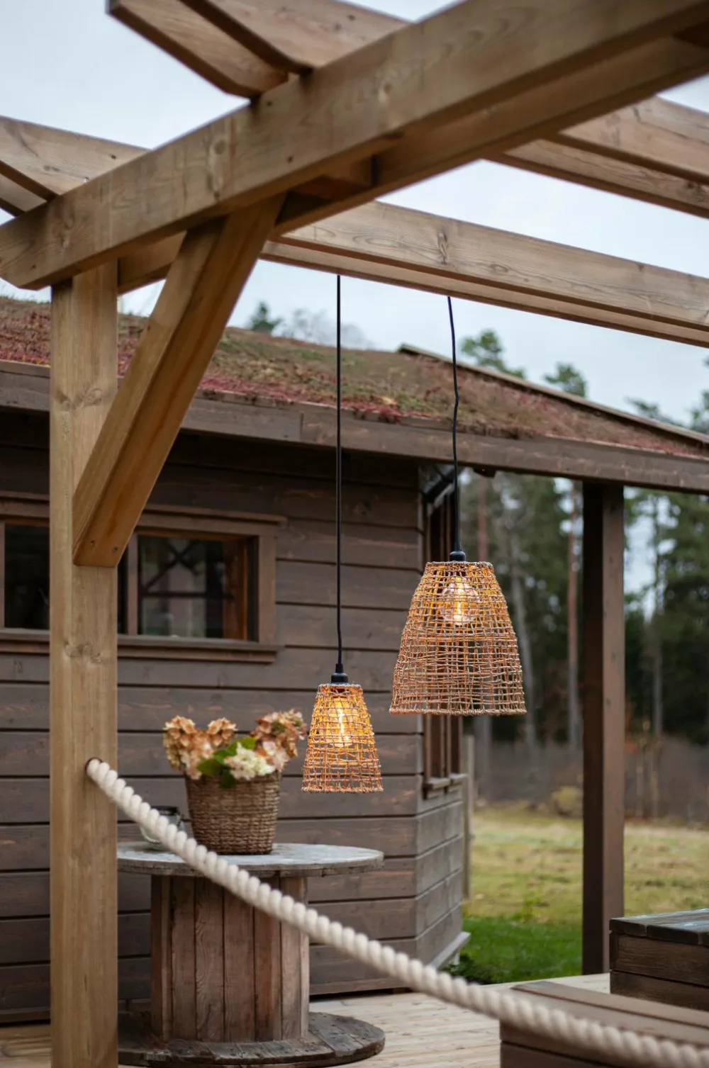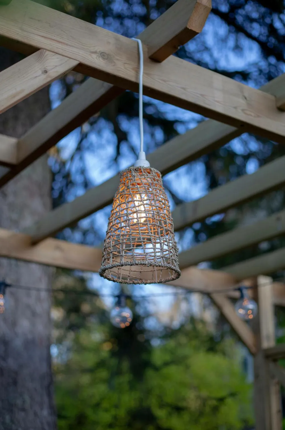 Flettet lampeskærm af tørret søgræs, størrelse 17x23cm. Lampeskærmen er håndflettet, hvilket giver hvert produkt et unikt udseende. Holder lavet til at passe til e27-ledningssæt. Mix og match med vores udendørs ledningssæt og pærer.