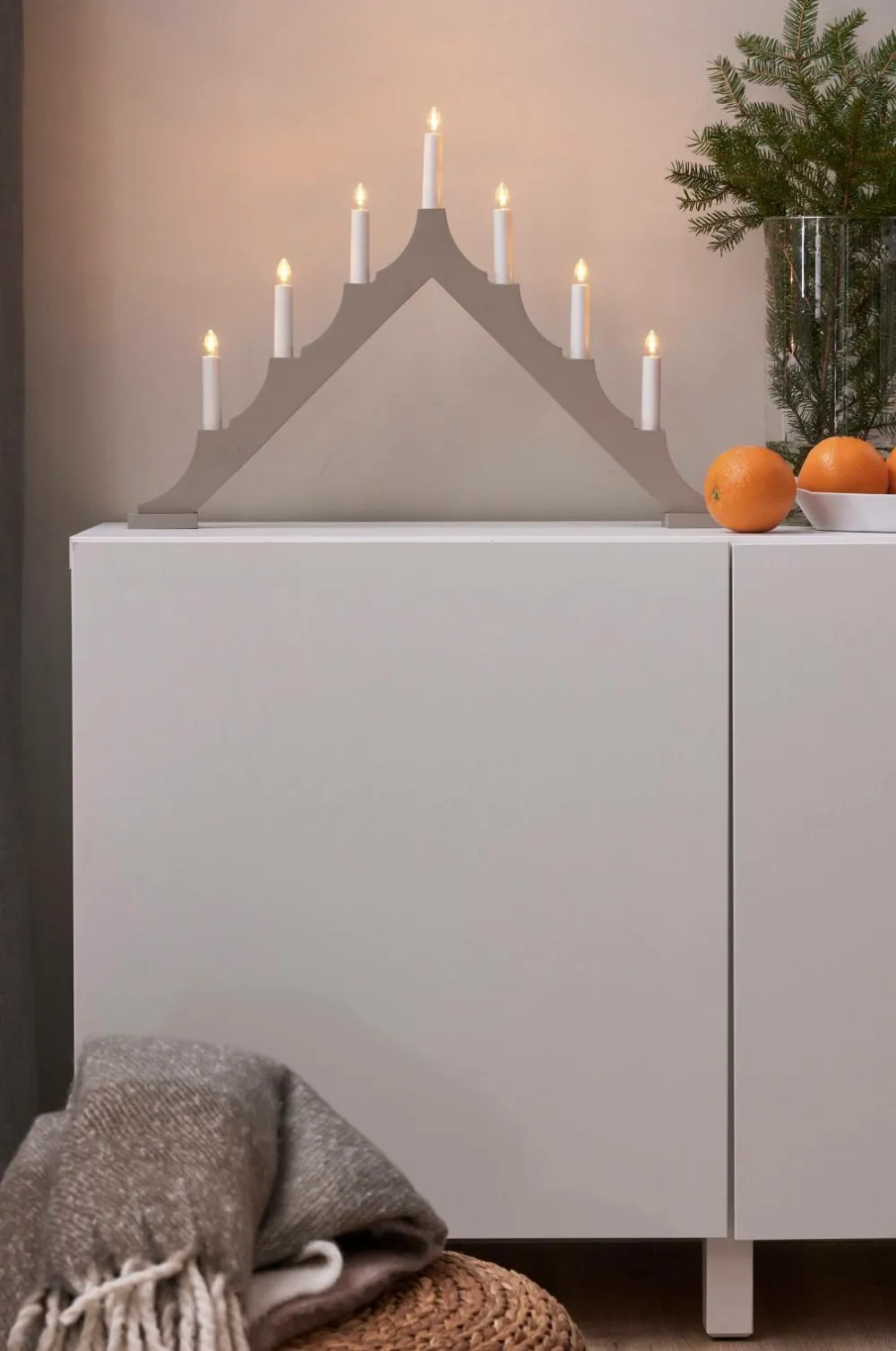 Lysestage lavet af træ. Klassisk formet lysestage med et moderne touch. Flot lysbillede, der skaber den perfekte julestemning i dit vindue.