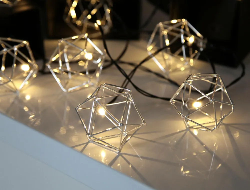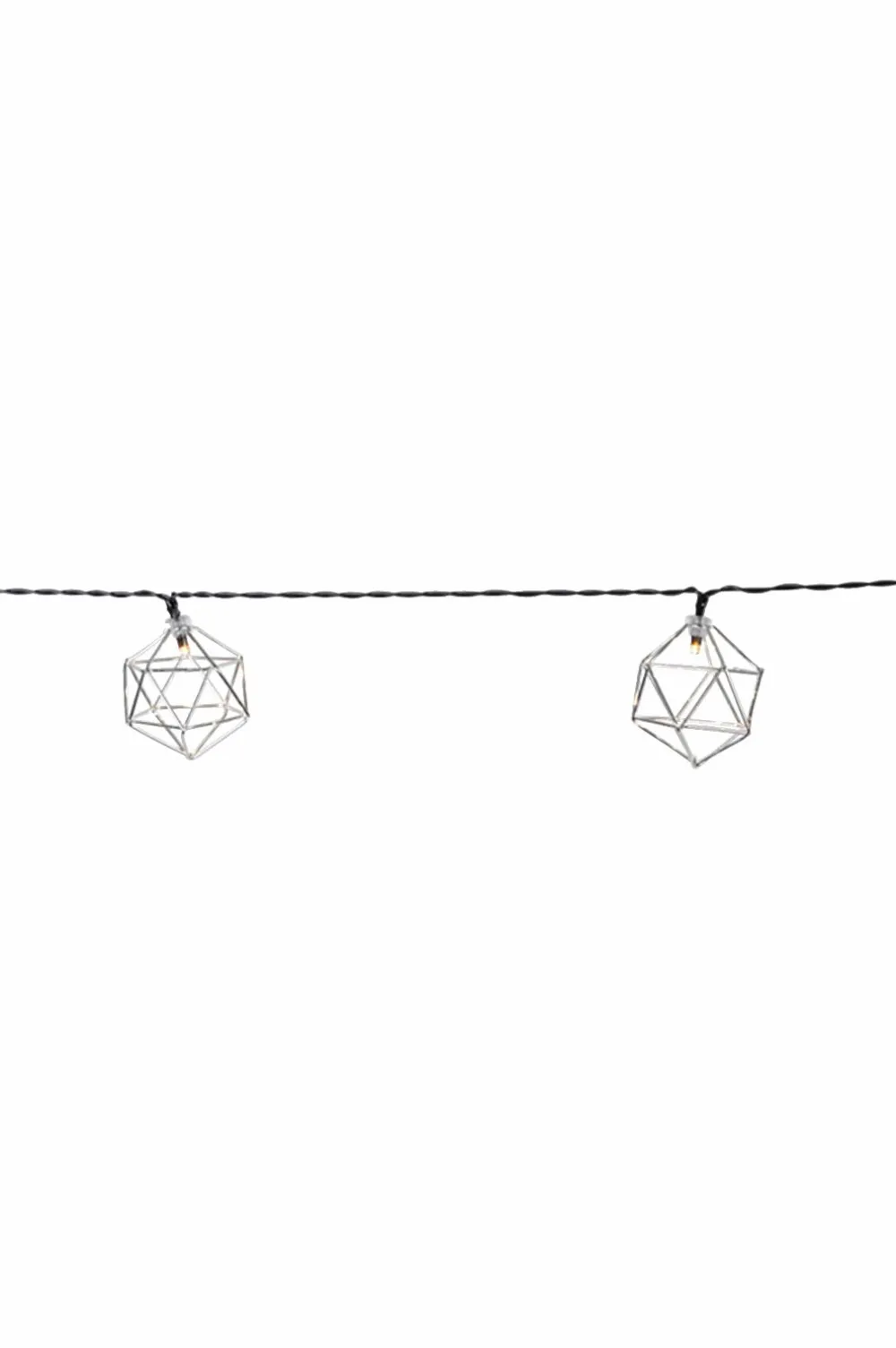 Stilren metal dekorationslyskæde med 10 LED-pærer. Lyskæden er 2,25 meter lang. En flot indretningsdetalje som samtidig skaber en hyggelig belysning.