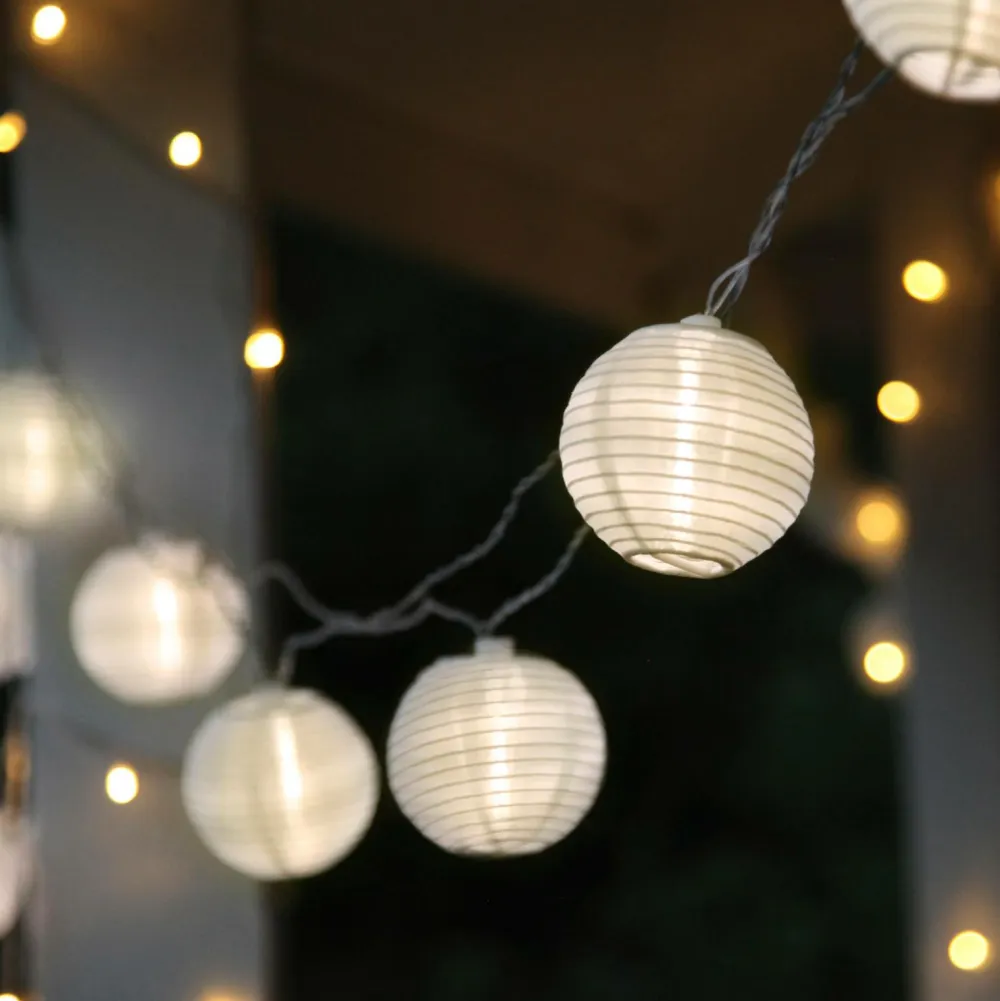 Lyskæde fint dekoreret med rispapirlamper til indendørs brug. Lyskæden har 10 LED-pærer med varmt hvidt skær. En skøn lyskæde at pynte op med til hverdag og til fest. Bredde/længde: 135 cm. Højde: 7 cm. Dybde: 7,50 cm