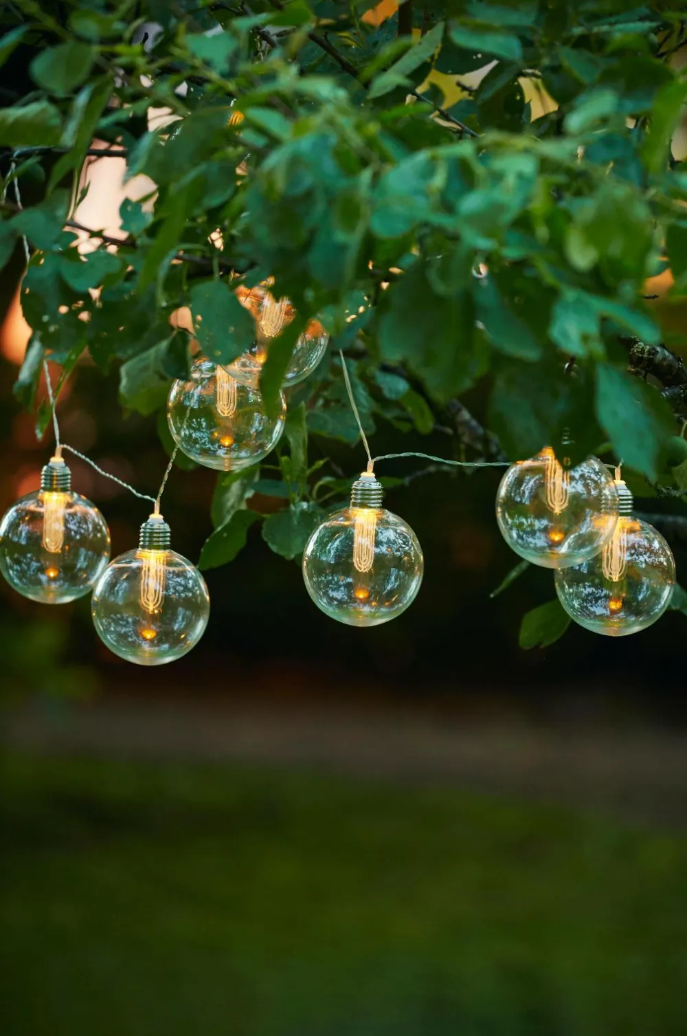 Dekorativ solcellelyskæde med otte storel plastkugler, kan bruges indendørs og udendørs. I hver kugle ligger en graveret plastskive, som spreder et varmt hvidt skær. Transparent kabel, ledningslængde 2 m. Drives med 1 genopladeligt AA-batteri. Batterier medfølger.