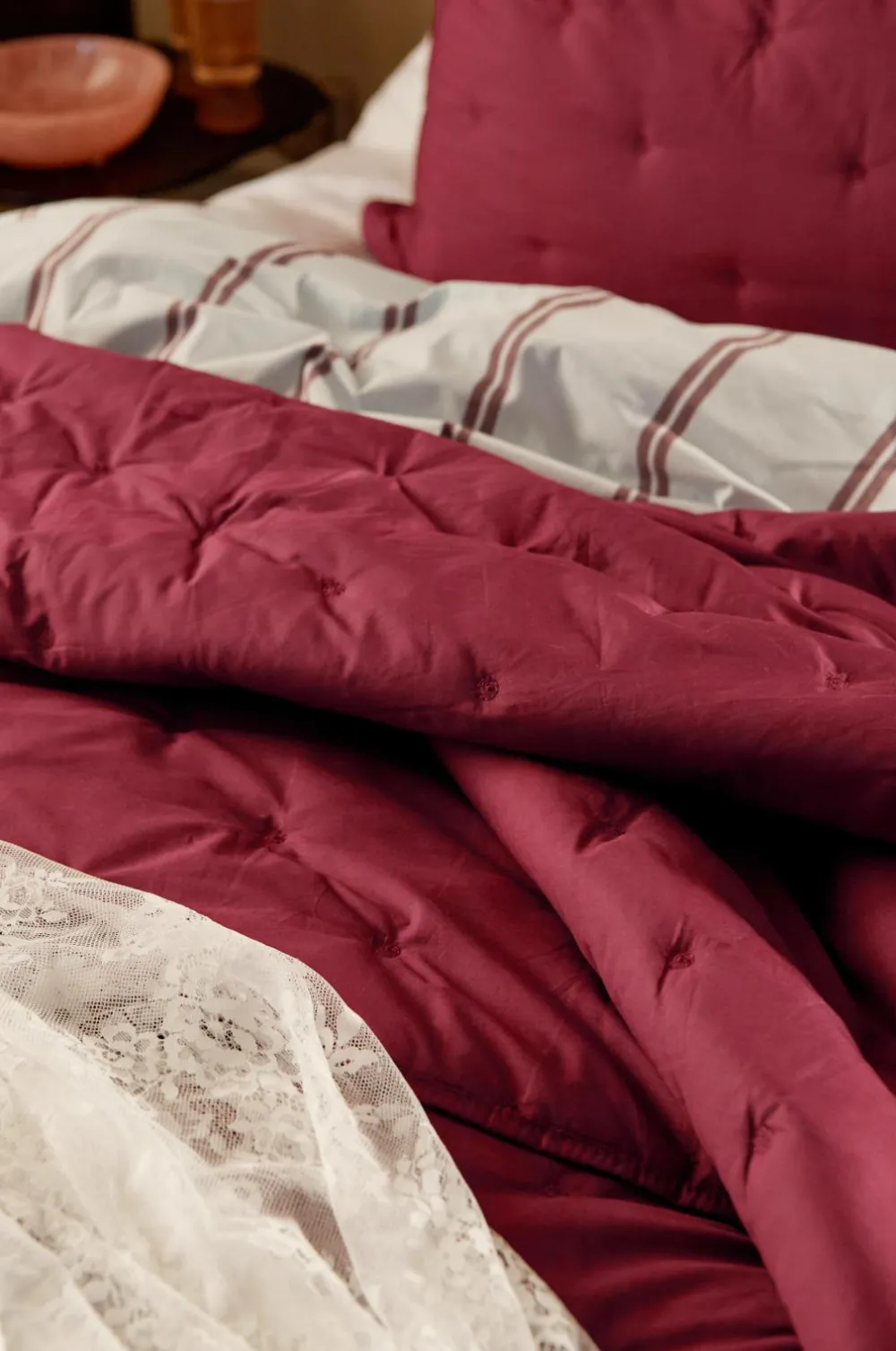• Quiltet, foret sengetæppe i sprød bomuldspoplin