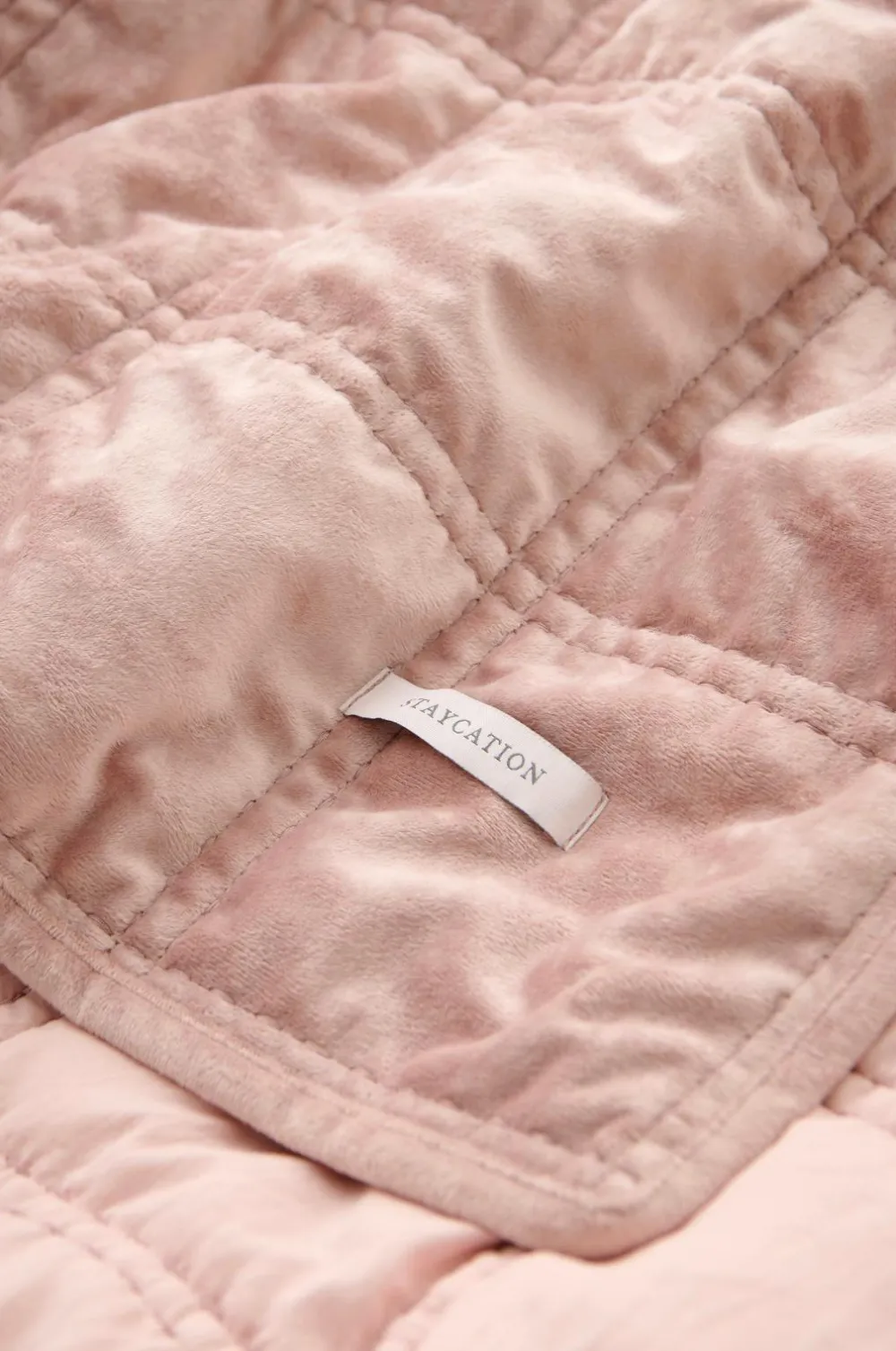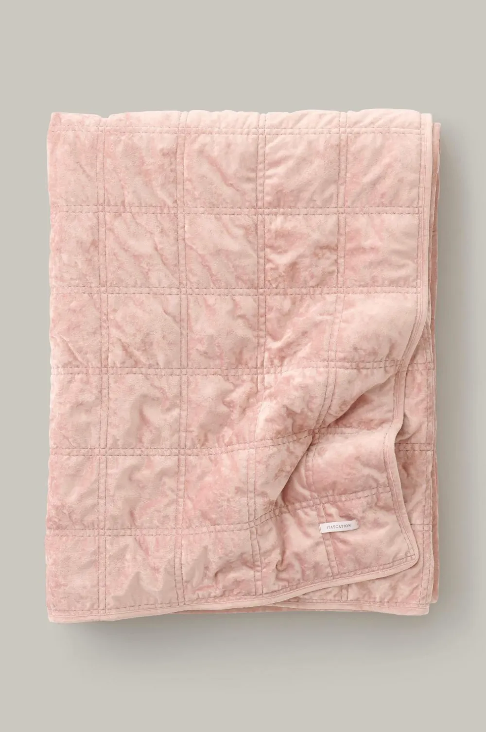 • Quiltet sengetæppe i fløjl med håndquiltet følelse